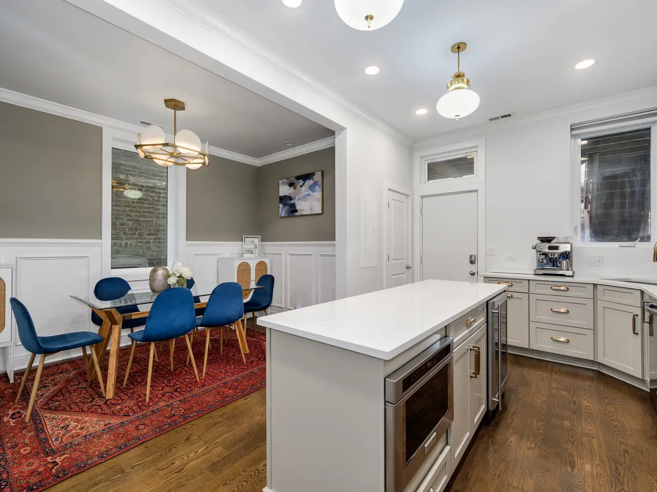 This exquisitely restored Victorian residence is a true architectural gem, seamlessly blending timeless historic charm with contemporary luxury. The expansive main floor features high ceilings, exposed brick, and an open-layout with both the living and dining room flowing into a chef's kitchen that has been thoughtfully renovated with brand-new custom cabinetry and premium appliances. Step out of the kitchen into an outdoor oasis: the private backyard is an entertainer's dream, featuring a beautifully landscaped garden, two decks, and a tranquil patio. In addition to the expansive outdoor space, the backyard features a two-car garage and a storage shed. Upstairs, the second level presents a sun-soaked library with a dramatic bay window and a serene primary suite with a luxurious walk-in closet and spa-inspired ensuite bath. The third floor features two generously-sized bedrooms, a full bath with an oversized soaking tub for ultimate relaxation, and conveniently located side-by-side laundry. The lower level features a spacious family room, a private bedroom with an adjacent full bath, and a private entrance leading to a serene back patio and the lush garden - ideal for an in-law suite, guest retreat, or peaceful home office. Perfectly positioned on a quiet, tree-lined street just steps away from Wicker Park's celebrated dining, boutiques, and vibrant arts scene, and a short walk to the Division Blue Line and the 606. This move-in ready home is a rare find, combining historic architecture, modern luxury, and serene indoor-outdoor living, all within the heart of Wicker Park.