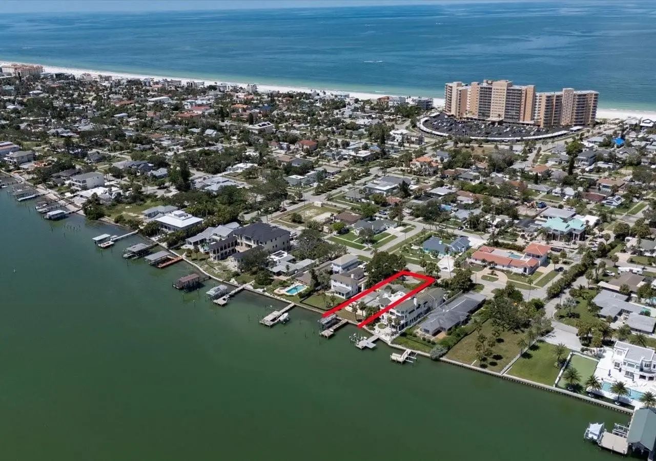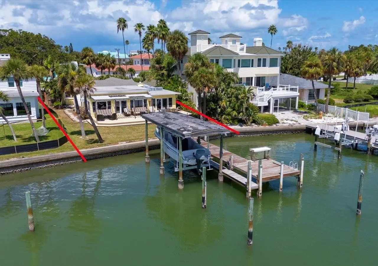Under contract-accepting backup offers. Discover the rare opportunity to design and build your own coastal retreat on this residential lot with 60 feet of bay frontage. Wake each morning to breathtaking sunrises over the water, with dolphins and manatees often playing at the end of your covered boat dock and a wide variety of water birds to admire. Enjoy fishing, tubing, and skiing right from your backyard, with easy accessibility to the Intracoastal Waterway, just five minutes away. Spend the days exploring the coastline or relaxing and admiring your view. This North Clearwater Beach location offers the best of both worlds: just moments from the lively stretch of Mandalay Avenue where you'll find the bustling Pier 60 with its entertainment and attractions, dining and luxury hotels. — or take a short, peaceful stroll to the quiet, residential beach access where you’ll find virtually secluded stretches of soft white sand and unforgettable sunsets, without a neon sign in sight! For the water lover, it’s all here: a boat in the back yard and sandy shores with gentle waves just steps away. And with Tampa International Airport, luxury shopping, major sports teams, concerts, and nightlife no more than 30 minutes from home, you can live like you're on vacation, without sacrificing the energy and amenities of a thriving city. This is the perfect canvas to build your dream home and live the ultimate Florida lifestyle. THIS LISTING IS FOR LAND ONLY. HOUSE IS SUBSTANTIALLY DAMAGED.
