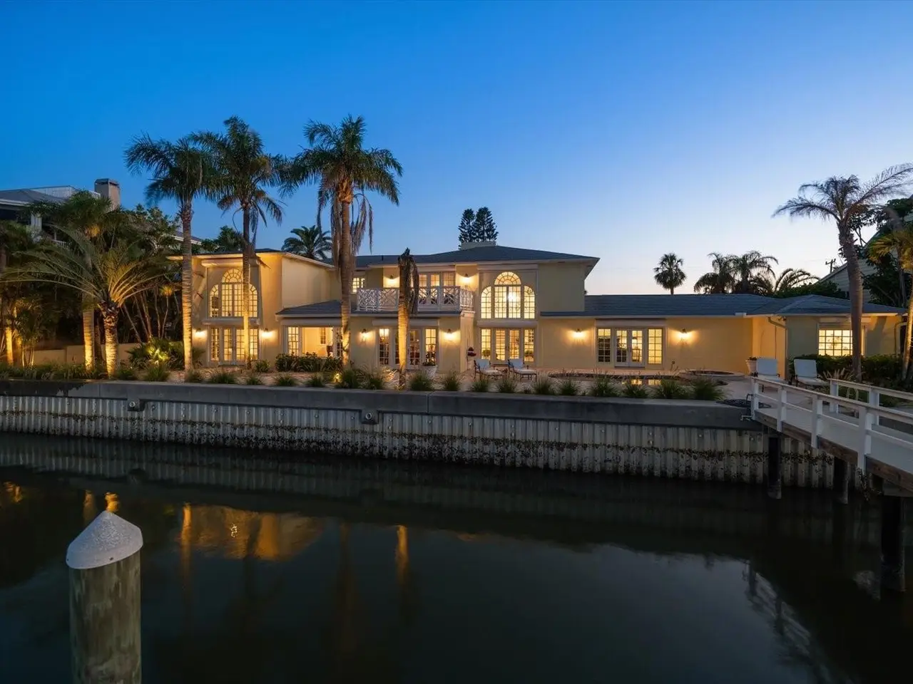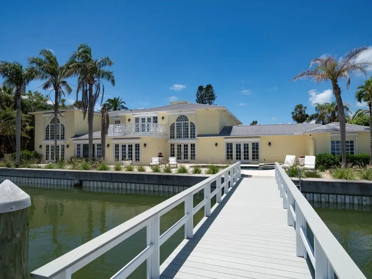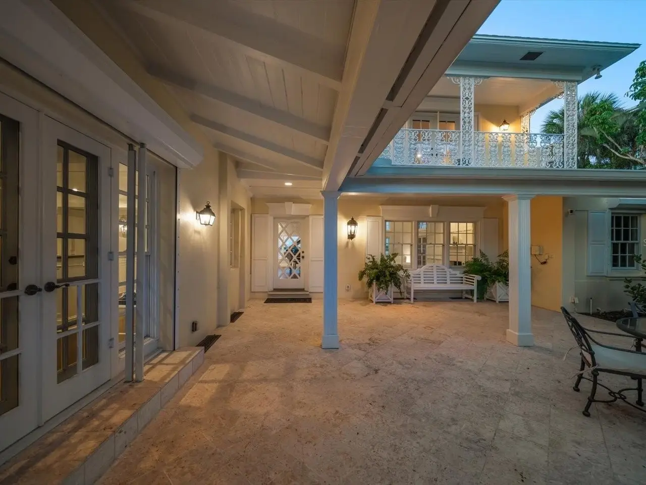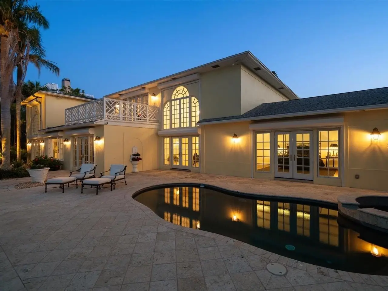 Near the tip of an island, among an enclave of luxury homes, this bayfront estate offers the rare combination of enduring architectural beauty and the easy rhythm of coastal living. Just a short walk brings you to deeded access to the white sands and gentle surf of the Gulf, while at home, the dock extends into calm waters where dolphins play and sunsets shimmer across the bay. Mornings begin with coffee on the dock, the sound of water lapping below and the flash of silver as fish break the surface. In the afternoon, a walk along the beach gives way to golden skies and the sun’s slow descent beyond the Gulf. Evenings invite a stroll to dinner at the nearby Carlouel beach and yacht club, where island living feels both intimate and elevated. Built in an era when grace, character, and quality were expected, this home has been thoughtfully restored to preserve its timeless soul while embracing the comfort of modern life. The result is a beautiful blend of casual sophistication and classic refinement—a home that feels equally suited for quiet reflection or grand entertaining. Gracious square footage offers space and privacy for family and guests alike. Entry is through a courtyard framed in limestone, leading into a grand living room with gleaming wood floors and expansive palladian windows that showcase breathtaking water views. It’s a room designed not just for living, but for gathering—an invitation to celebrate every moment with style and ease. The dining room shares the same gracious proportions, filled with light and views that make even everyday meals feel like an occasion. Every great home has a kitchen that serves as its heart, and this one does not disappoint. A chef’s showplace, it looks as if it were designed for a magazine spread, yet it’s warm and welcoming. The adjoining spaces encourage laughter and conversation, with a large bar for watching the chef at work, a comfortable breakfast nook, and a cozy gathering room anchored by a fireplace. The primary suite is located on the ground floor, where mornings begin with serene bayfront views and soft light filtering through palms. The ground floor also includes a private office and small library, creating quiet nooks for work or reflection—each with a connection to the water and the rhythm of island life. Upstairs, flexibility meets charm. Whether for family or guests, the space offers three generous bedrooms and a second family room with stunning water views—a perfect place for games, movies, or simply watching the bay change colors with the sky. Thoughtful details abound, from abundant storage to inviting alcoves that make every corner feel special. From its iconic Palm Beach inspired architecture to its graceful restoration, this bayfront home captures the art of living beautifully by the water. Elegant yet relaxed, private yet connected, it is a home where every day feels like a chapter in a timeless coastal story.