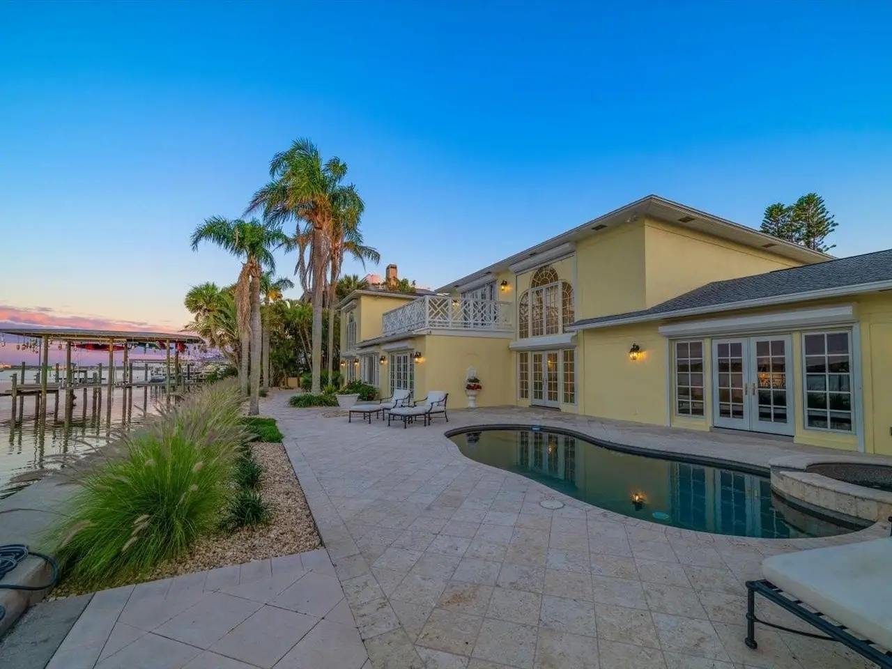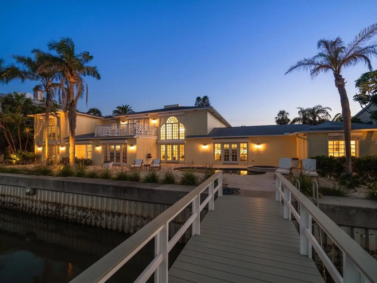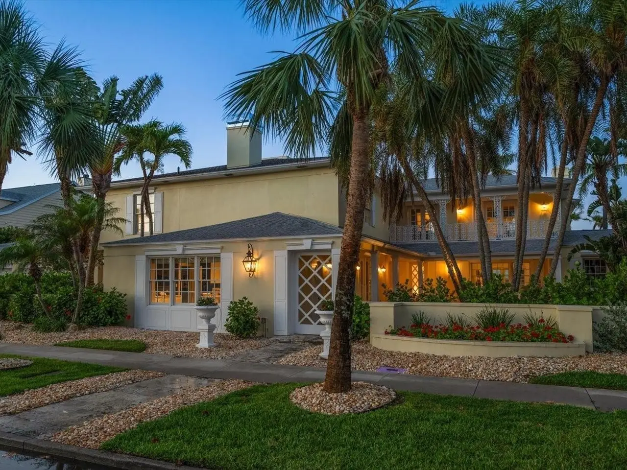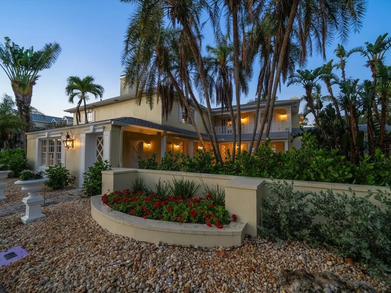 Near the tip of an island, among an enclave of luxury homes, this bayfront estate offers the rare combination of enduring architectural beauty and the easy rhythm of coastal living. Just a short walk brings you to deeded access to the white sands and gentle surf of the Gulf, while at home, the dock extends into calm waters where dolphins play and sunsets shimmer across the bay. Mornings begin with coffee on the dock, the sound of water lapping below and the flash of silver as fish break the surface. In the afternoon, a walk along the beach gives way to golden skies and the sun’s slow descent beyond the Gulf. Evenings invite a stroll to dinner at the nearby Carlouel beach and yacht club, where island living feels both intimate and elevated. Built in an era when grace, character, and quality were expected, this home has been thoughtfully restored to preserve its timeless soul while embracing the comfort of modern life. The result is a beautiful blend of casual sophistication and classic refinement—a home that feels equally suited for quiet reflection or grand entertaining. Gracious square footage offers space and privacy for family and guests alike. Entry is through a courtyard framed in limestone, leading into a grand living room with gleaming wood floors and expansive palladian windows that showcase breathtaking water views. It’s a room designed not just for living, but for gathering—an invitation to celebrate every moment with style and ease. The dining room shares the same gracious proportions, filled with light and views that make even everyday meals feel like an occasion. Every great home has a kitchen that serves as its heart, and this one does not disappoint. A chef’s showplace, it looks as if it were designed for a magazine spread, yet it’s warm and welcoming. The adjoining spaces encourage laughter and conversation, with a large bar for watching the chef at work, a comfortable breakfast nook, and a cozy gathering room anchored by a fireplace. The primary suite is located on the ground floor, where mornings begin with serene bayfront views and soft light filtering through palms. The ground floor also includes a private office and small library, creating quiet nooks for work or reflection—each with a connection to the water and the rhythm of island life. Upstairs, flexibility meets charm. Whether for family or guests, the space offers three generous bedrooms and a second family room with stunning water views—a perfect place for games, movies, or simply watching the bay change colors with the sky. Thoughtful details abound, from abundant storage to inviting alcoves that make every corner feel special. From its iconic Palm Beach inspired architecture to its graceful restoration, this bayfront home captures the art of living beautifully by the water. Elegant yet relaxed, private yet connected, it is a home where every day feels like a chapter in a timeless coastal story.