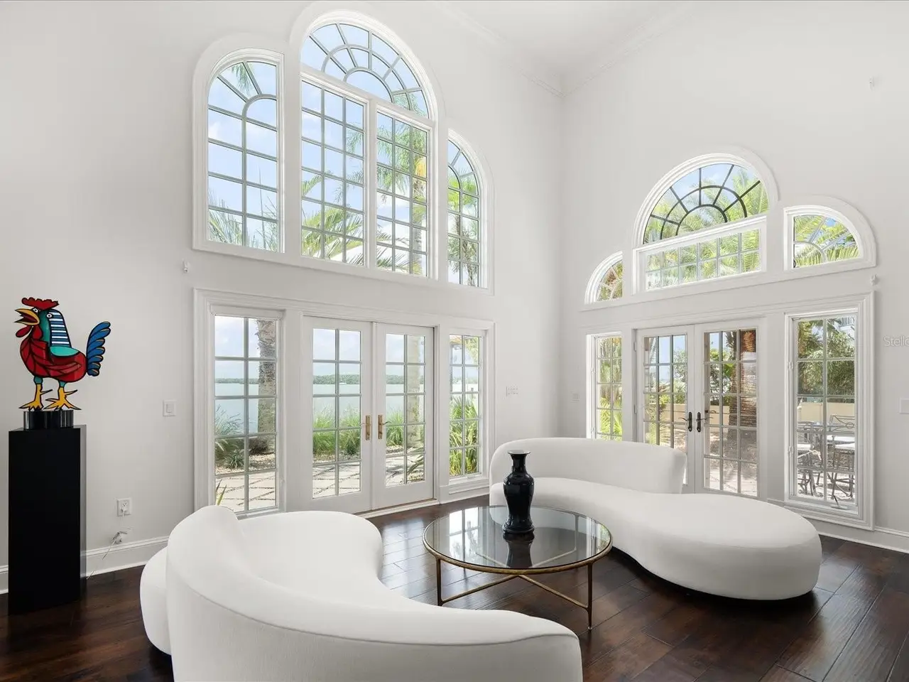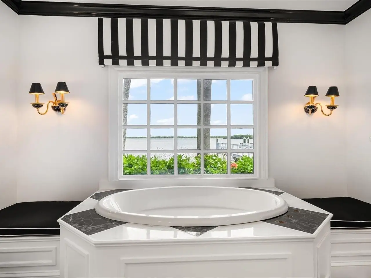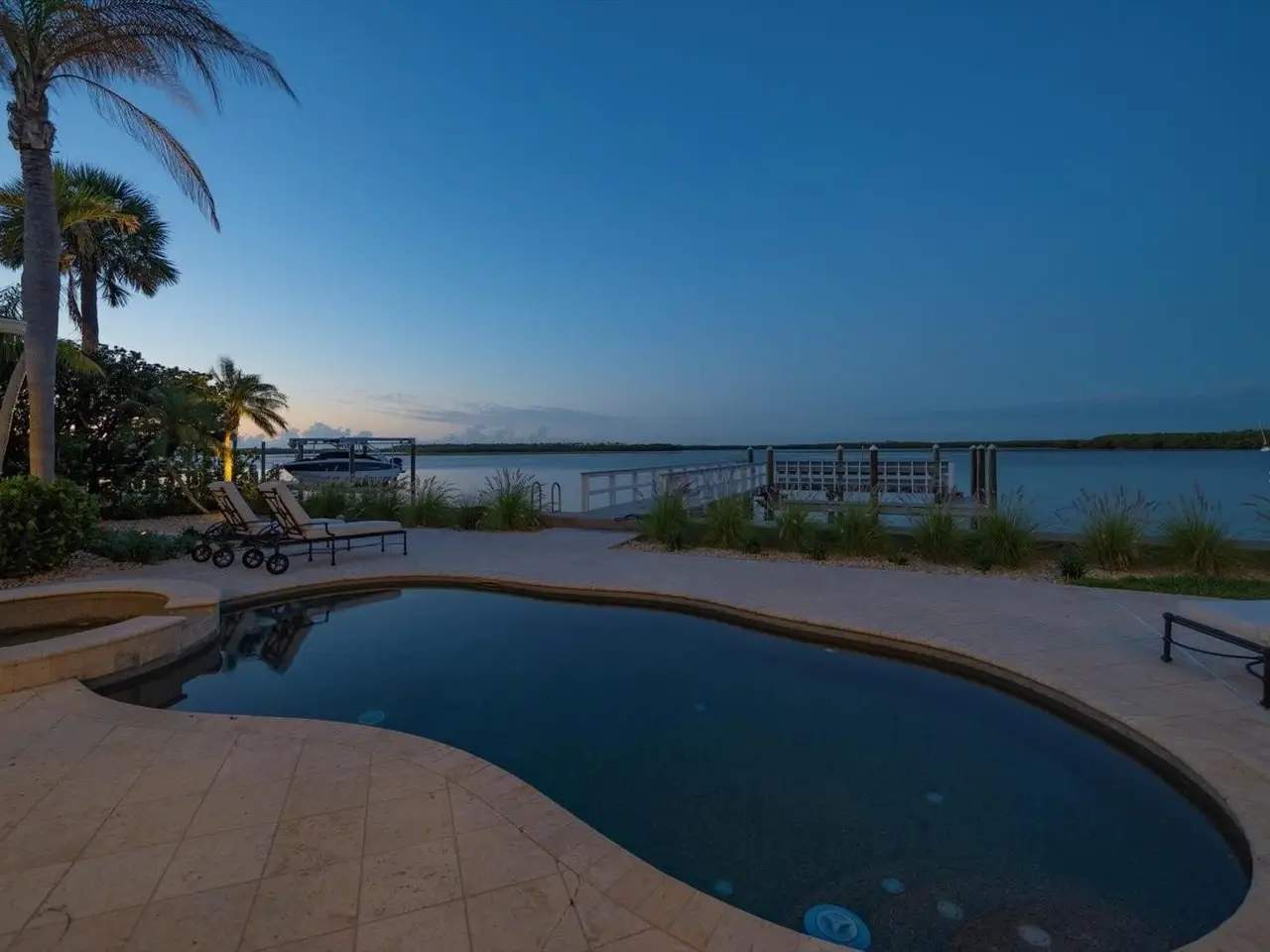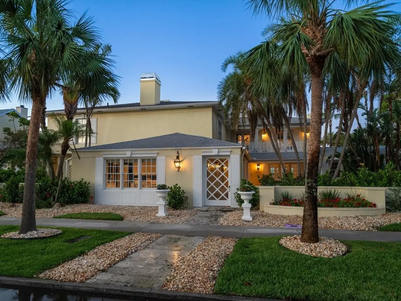 Near the tip of an island, among an enclave of luxury homes, this bayfront estate offers the rare combination of enduring architectural beauty and the easy rhythm of coastal living. Just a short walk brings you to deeded access to the white sands and gentle surf of the Gulf, while at home, the dock extends into calm waters where dolphins play and sunsets shimmer across the bay. Mornings begin with coffee on the dock, the sound of water lapping below and the flash of silver as fish break the surface. In the afternoon, a walk along the beach gives way to golden skies and the sun’s slow descent beyond the Gulf. Evenings invite a stroll to dinner at the nearby Carlouel beach and yacht club, where island living feels both intimate and elevated. Built in an era when grace, character, and quality were expected, this home has been thoughtfully restored to preserve its timeless soul while embracing the comfort of modern life. The result is a beautiful blend of casual sophistication and classic refinement—a home that feels equally suited for quiet reflection or grand entertaining. Gracious square footage offers space and privacy for family and guests alike. Entry is through a courtyard framed in limestone, leading into a grand living room with gleaming wood floors and expansive palladian windows that showcase breathtaking water views. It’s a room designed not just for living, but for gathering—an invitation to celebrate every moment with style and ease. The dining room shares the same gracious proportions, filled with light and views that make even everyday meals feel like an occasion. Every great home has a kitchen that serves as its heart, and this one does not disappoint. A chef’s showplace, it looks as if it were designed for a magazine spread, yet it’s warm and welcoming. The adjoining spaces encourage laughter and conversation, with a large bar for watching the chef at work, a comfortable breakfast nook, and a cozy gathering room anchored by a fireplace. The primary suite is located on the ground floor, where mornings begin with serene bayfront views and soft light filtering through palms. The ground floor also includes a private office and small library, creating quiet nooks for work or reflection—each with a connection to the water and the rhythm of island life. Upstairs, flexibility meets charm. Whether for family or guests, the space offers three generous bedrooms and a second family room with stunning water views—a perfect place for games, movies, or simply watching the bay change colors with the sky. Thoughtful details abound, from abundant storage to inviting alcoves that make every corner feel special. From its iconic Palm Beach inspired architecture to its graceful restoration, this bayfront home captures the art of living beautifully by the water. Elegant yet relaxed, private yet connected, it is a home where every day feels like a chapter in a timeless coastal story.