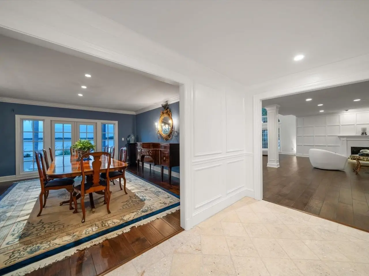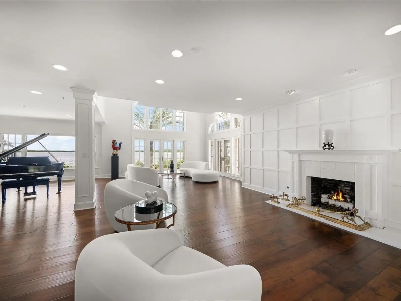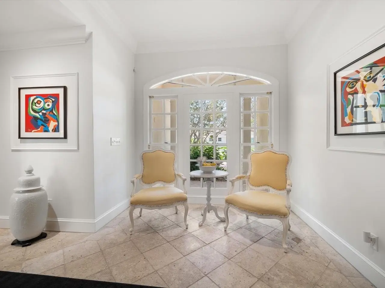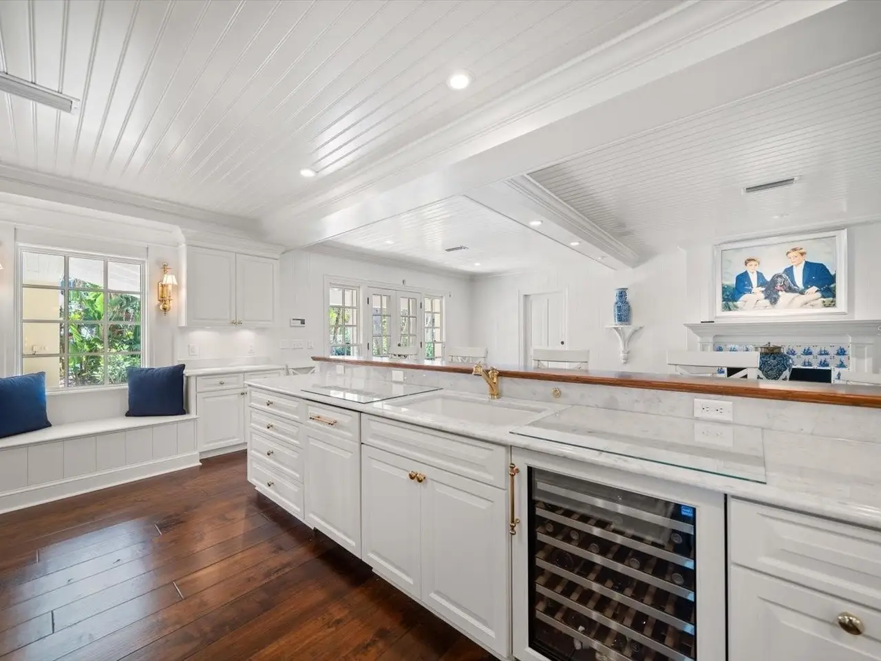 Near the tip of an island, among an enclave of luxury homes, this bayfront estate offers the rare combination of enduring architectural beauty and the easy rhythm of coastal living. Just a short walk brings you to deeded access to the white sands and gentle surf of the Gulf, while at home, the dock extends into calm waters where dolphins play and sunsets shimmer across the bay. Mornings begin with coffee on the dock, the sound of water lapping below and the flash of silver as fish break the surface. In the afternoon, a walk along the beach gives way to golden skies and the sun’s slow descent beyond the Gulf. Evenings invite a stroll to dinner at the nearby Carlouel beach and yacht club, where island living feels both intimate and elevated. Built in an era when grace, character, and quality were expected, this home has been thoughtfully restored to preserve its timeless soul while embracing the comfort of modern life. The result is a beautiful blend of casual sophistication and classic refinement—a home that feels equally suited for quiet reflection or grand entertaining. Gracious square footage offers space and privacy for family and guests alike. Entry is through a courtyard framed in limestone, leading into a grand living room with gleaming wood floors and expansive palladian windows that showcase breathtaking water views. It’s a room designed not just for living, but for gathering—an invitation to celebrate every moment with style and ease. The dining room shares the same gracious proportions, filled with light and views that make even everyday meals feel like an occasion. Every great home has a kitchen that serves as its heart, and this one does not disappoint. A chef’s showplace, it looks as if it were designed for a magazine spread, yet it’s warm and welcoming. The adjoining spaces encourage laughter and conversation, with a large bar for watching the chef at work, a comfortable breakfast nook, and a cozy gathering room anchored by a fireplace. The primary suite is located on the ground floor, where mornings begin with serene bayfront views and soft light filtering through palms. The ground floor also includes a private office and small library, creating quiet nooks for work or reflection—each with a connection to the water and the rhythm of island life. Upstairs, flexibility meets charm. Whether for family or guests, the space offers three generous bedrooms and a second family room with stunning water views—a perfect place for games, movies, or simply watching the bay change colors with the sky. Thoughtful details abound, from abundant storage to inviting alcoves that make every corner feel special. From its iconic Palm Beach inspired architecture to its graceful restoration, this bayfront home captures the art of living beautifully by the water. Elegant yet relaxed, private yet connected, it is a home where every day feels like a chapter in a timeless coastal story.