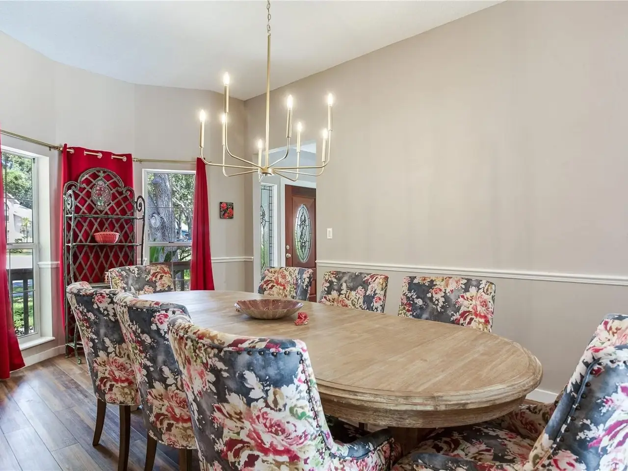 - Vaulted ceilings with triple bay windows