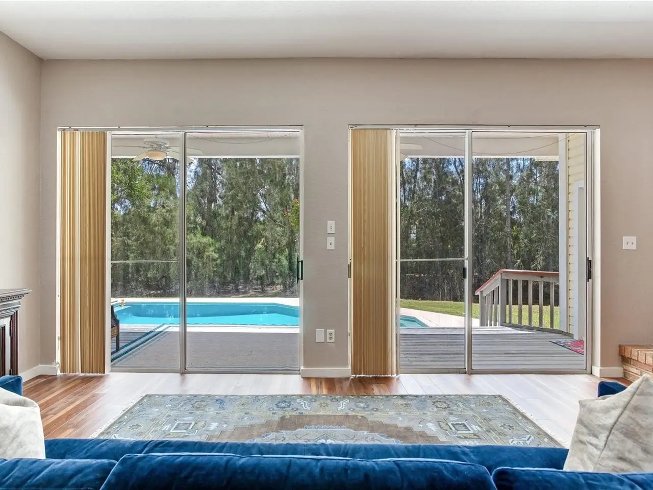 - Expansive backyard with sparkling pool