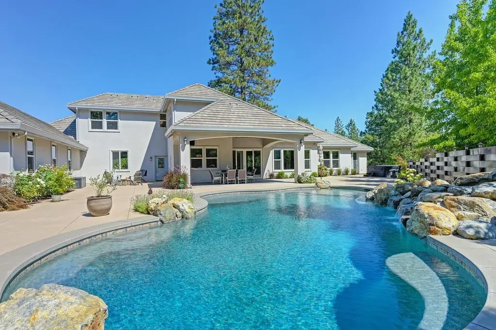 2 Homes with separate driveways! This exceptional property features a custom-built 2016 main home (approx. 2,784 sq. ft.) with 3 bedrooms + den + game room and 2.5 baths. Thoughtfully designed, it lives like a single-level with two bedrooms and a bath upstairs. The attached oversized garage and massive 16'x70' RV garage provides ample storage. Inside, hickory floors, a chef's kitchen with Thermador appliances, granite counters, and custom cabinetry set the stage for elegant living. The primary suite offers outdoor access, a large walk-in closet, dual sinks, and a luxurious shower. Outdoor amenities include a sparkling pool with a waterfall, a spa, a covered patio plumbed for an outdoor kitchen, and a gas fire pit. A whole-house generator ensures peace of mind. The second home (approx. 1,000 sq. ft., built in 2004) offers 2 beds, 2 baths, a 1,000 sq. ft. garage, and a separate driveway, PG&E meter, and septic-ideal for multi-generational living or rental income. Conveniently located 5 minutes from I-80, this private foothill retreat is a must-see! Schedule your private tour today!
