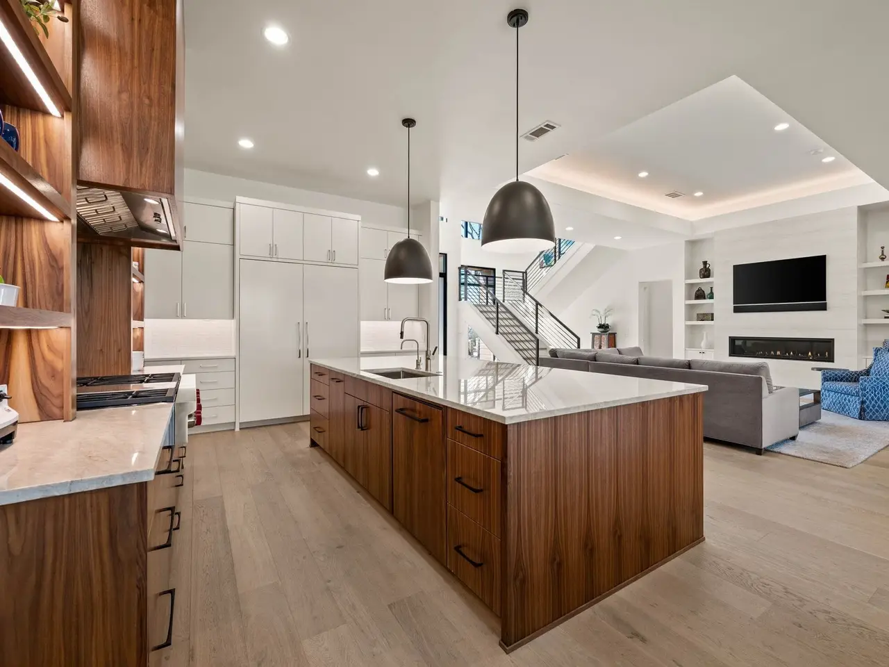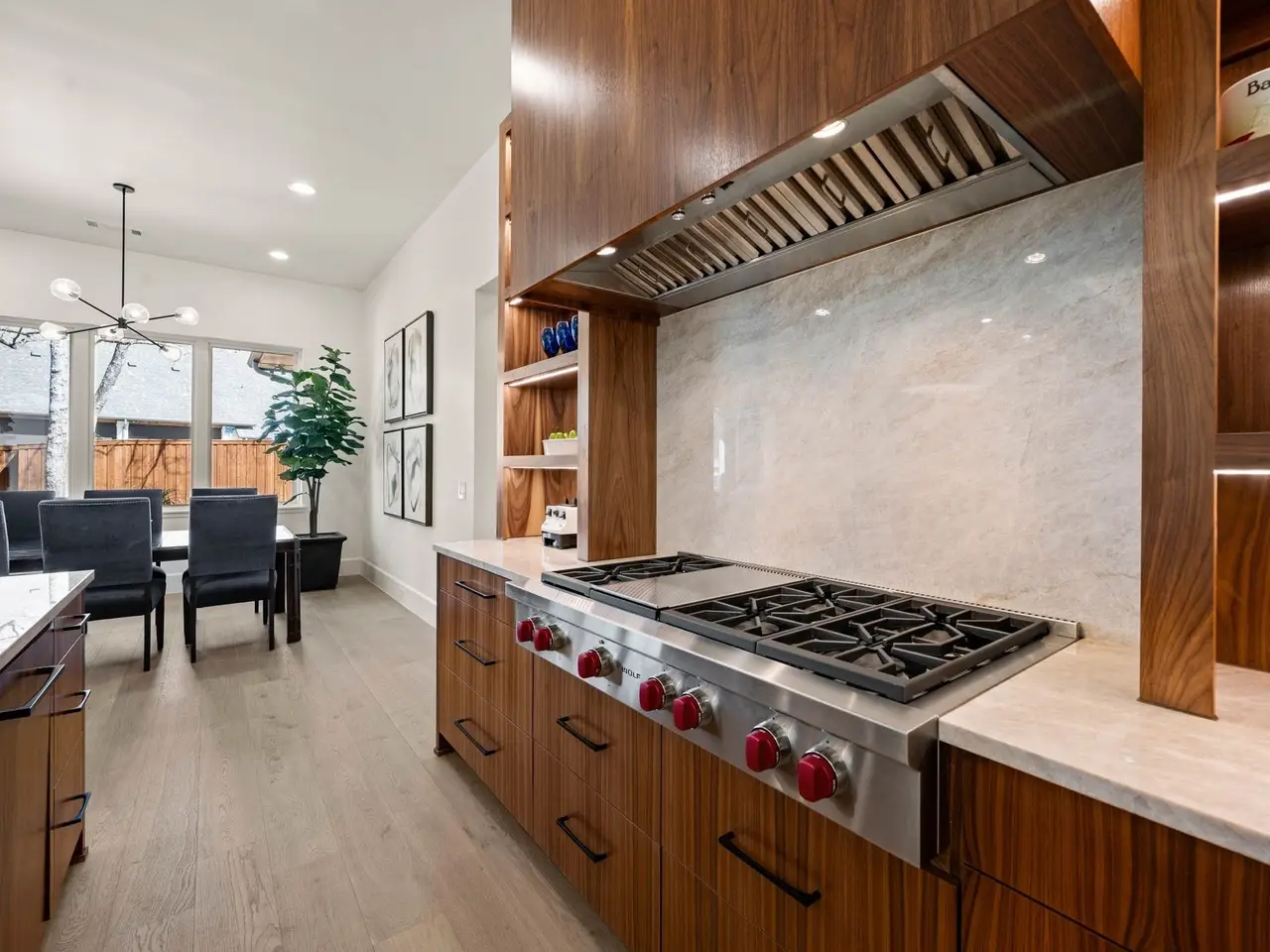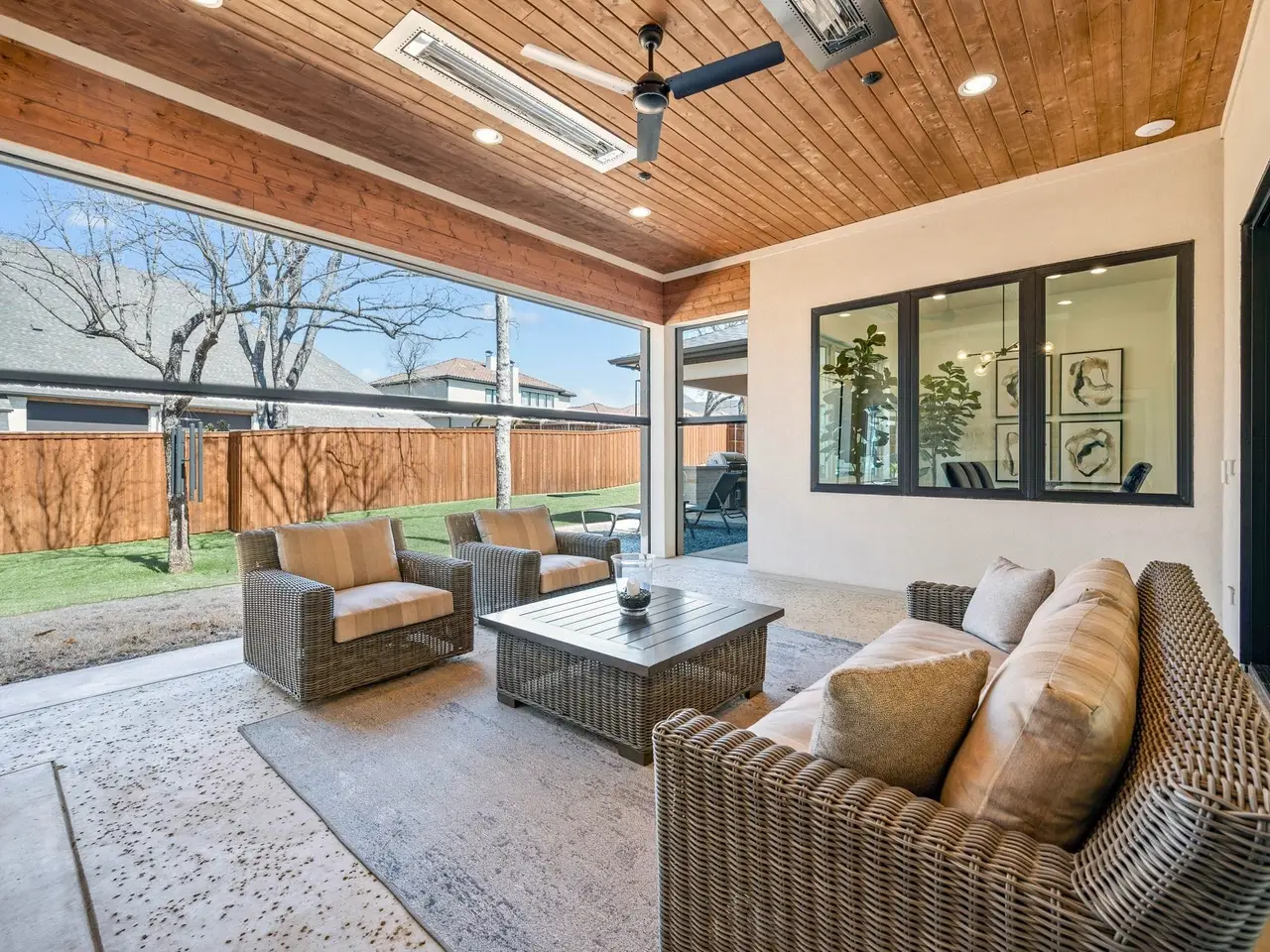 Exquisite Willowtree Custom Home was completed in 2023 and is move-in ready. Stunning and thoughtfully designed transitional modern in privately gated Legacy North on almost a half acre treed lot offers 5 bedrooms, 5 full and 1 half baths, 4 car garage, ensuite bathrooms, 2 utility rooms, downstairs media, office, game room, solid-core doors throughout, luxury engineered white oak flooring, remote controlled window treatments, museum finish walls. Open floor plan welcomes you into a chefs kitchen complete with Wolf appliance package, built-in refrigerator, seamless white and wood cabinetry, oversized Taj Mahal quartzite island and counters, double convection ovens, drawer microwave, 6 burner range with griddle. Living room features linear fireplace and sliding doors overlooking expansive backyard. Primary bedroom with his-and-hers closets, double shower, soaker tub. Private guest suite down offers huge walk-in shower. Second living down is utilized as a media and offers wet bar, wine fridge, black-out window treatments and sliding door to patio. Upstairs offers 3 bedrooms, game, utility, walk-out attic with huge floored storage, spray foam encapsulated for energy efficiency. The outdoor living area is perfect for entertaining and offers a covered patio area, built-in grill, stone fireplace, infrared heaters, zoysia grass. The electronic privacy screens on the patio offer the perfect blend of indoor-outdoor living, creating an inviting space for hosting gatherings. Plenty of room for pool, pets and play. Four garages with epoxy floors and space for extended parking on driveway. Seller is prepared to offer a reasonable pool allowance if a buyer would prefer a pool. Seller will also pay a year's worth of HOA dues at closing. Gorgeous!