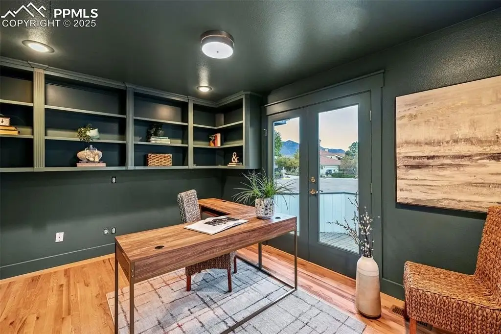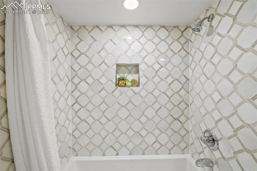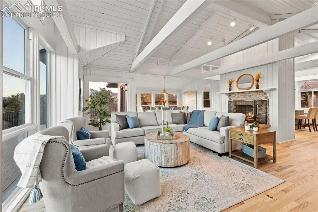 Rare Southern Cape Cod/Beach Style Retreat in Colorado Springs – City & Mountain Views! Welcome to this fully remodeled, one-of-a-kind Southern beach-inspired ranch perched in one of Colorado Springs’ most sought-after neighborhoods. Blending coastal charm with mountain living, this home offers breathtaking panoramic views of both the city skyline and the Front Range — a truly rare find in the region. Step inside and you will immediately notice the vaulted, beamed ceilings with tongue-and-groove detailing, setting a warm, airy tone throughout the open-concept main level. The heart of the home is a gourmet chef’s kitchen, featuring high-end GE Café appliances, a double oven, and a stunning pass-through fireplace that connects both the kitchen and living areas. The expansive main-level master suite feels like a private retreat, boasting generous space, custom finishes, and spa-like elegance. Designer touches are found throughout the home, from curated lighting to premium flooring and custom cabinetry. Enjoy true indoor-outdoor living on the brand-new 1,800 sq ft composite deck, perfectly positioned for spectacular city views and engineered for a drop-in hot tub. The walk-out basement offers additional living and entertainment space, seamlessly connecting to the beautifully landscaped yard. The home has new windows, deck, concrete patios, roof, A/C, all new landscaping and sprinkler system, interior/exterior paint, custom kitchen cabinetry, quartz backsplash, and everything cosmetic. This home is turnkey and move in ready!