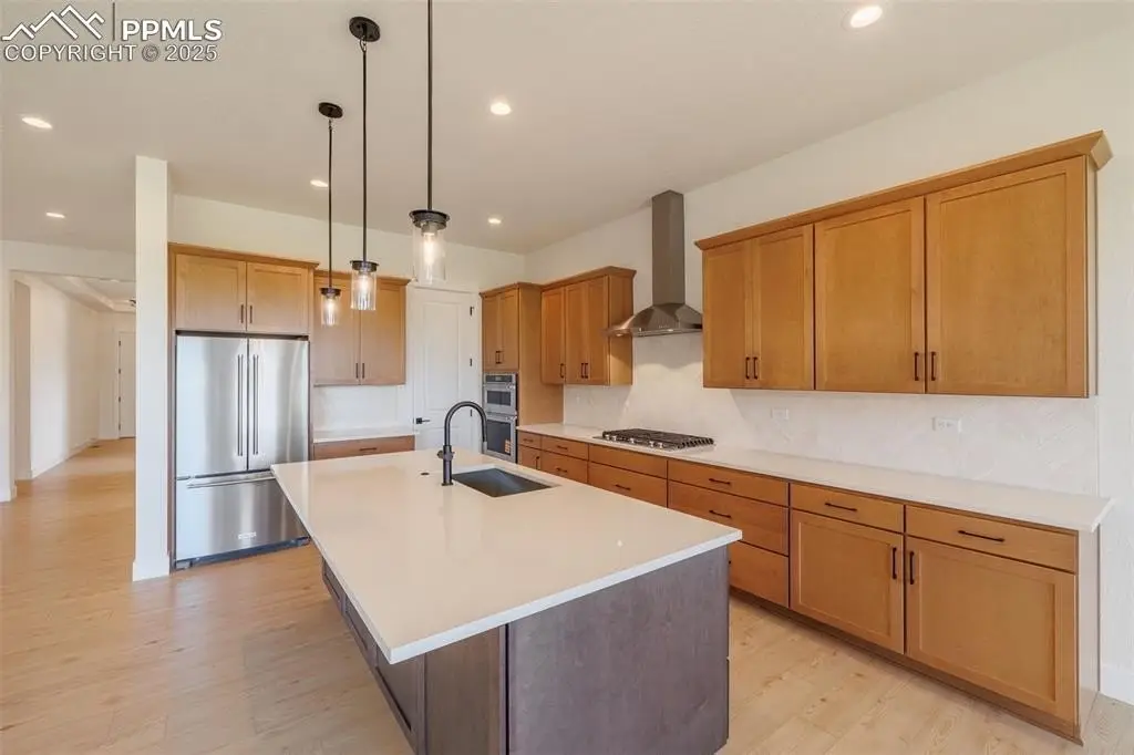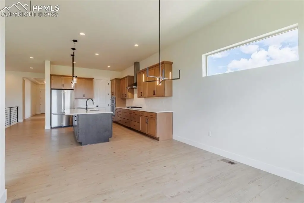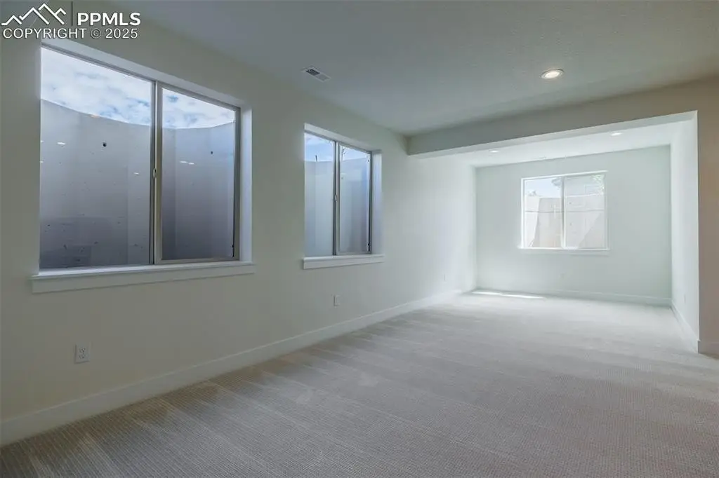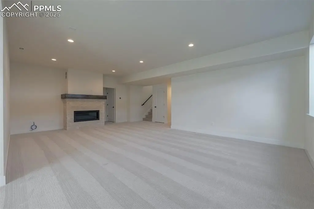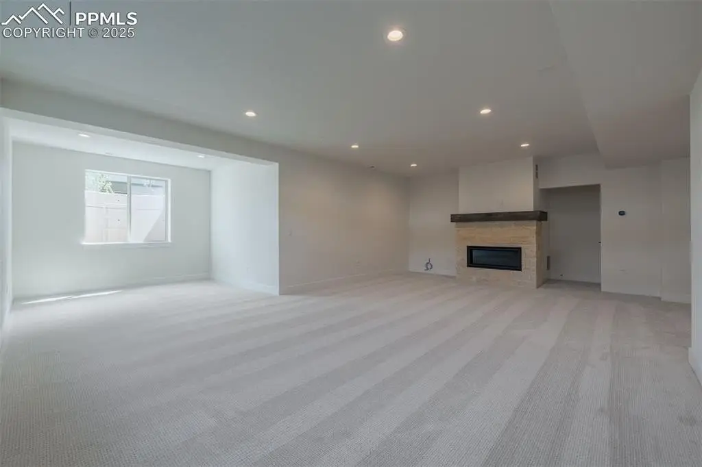 Welcome to single-level living at its finest in the gated community of Kissing Camels! This brand-new home features modern touches combined with high-end finishes. The gourmet kitchen makes a statement with premium upgrades, two-tone MasterCraft cabinetry, custom backsplash, and Kitchen Aid stainless steel appliances. Beautiful stacking slider makes the great room feel even bigger and more grand! The spacious primary bedroom suite offers beamed ceilings, a luxurious bath with spacious shower & freestanding tub, and double walk-in closet space. A finished lower level provides additional living space with an expansive second living area and fireplace as well as two additional massive bedrooms. This home is complete with designer-curated finishes. Full landscaping included. Other home amenities include, central air, Eldora white stone fireplace surrounds, and 3-car tandem garage. Come experience your dream home by scheduling a showing today. HOA dues include manned security, snow removal on private streets & trash removal. Walking distance to the Garden of the Gods Resort and Kissing Camels Golf Club, which offers numerous amenities including spa, gym, swimming pools, hot tubs, pickleball & tennis courts, and fine dining, with club membership. Plentiful hiking & biking trails close by. Excellent location only minutes from downtown, Manitou Springs, & Kissing Camels Golf Club. Rare opportunity to acquire one of the last remaining new homes in The Preserve at Kissing Camels. Don't let this beautiful home on a corner lot get away!