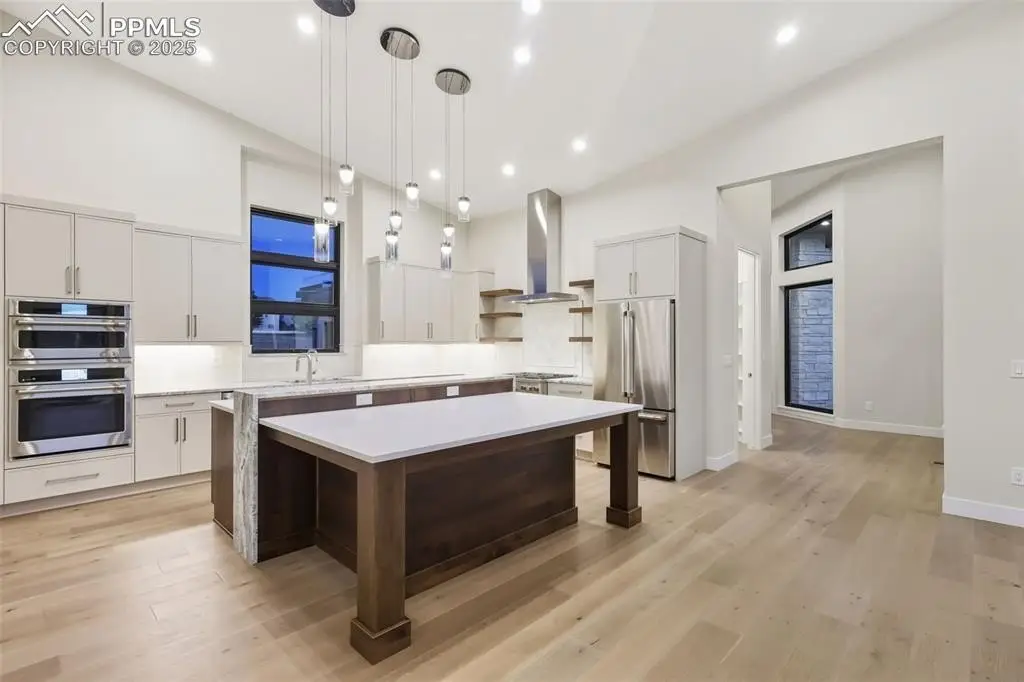 You cannot get a better view, MASSIVE Pikes Peak, Air Force Academy & Front Range Vistas await * Introducing an architectural masterpiece that blends striking Mountain Modern design & state of the art interior finishes * From the moment you drive up, this spectacular residence will not disappoint, curb appeal is a "10" * This luxury residence will captivate your senses & check all boxes * Featuring 4 spacious bedrooms, 4 luxurious baths & sleek oversized 3-car garage with custom, modern doors, perfectly positioned on a gently sloping lot to maximize privacy & sought after Rocky Mountain Views * With bold rooflines, soaring ceilings, expansive walls of glass, every space is flooded with natural light, designed to frame the massive views * The heart of the home is a chef’s dream kitchen featuring high-end "Cafe" appliances, custom cabinetry, oversized center island & the solid surface tops are gorgeous, ideal for both daily living & expert entertaining * Open-concept layout flows seamlessly into the great room featuring a modern gas fireplace with full wall tile accenting, custom folding slider doors invite you to a covered, outdoor living area, creating the perfect indoor-outdoor connection for enjoying Colorado’s four seasons, sunsets & majestic mountains * The primary suite is a true retreat, complete with a spa-inspired bath, oversized walk-in closet & private deck access. 2nd main level bedroom & separate office are a bonus * The lower level offers 10' ceiling heights, flexible living with 2 additional bedrooms including ensuite baths, family room, wet bar & billiard / media spaces with walk-out access to a private patio, yes with huge views * Multiple Decks & Patios * From refined materials to meticulous craftsmanship, every detail has been thoughtfully curated for luxury, comfort and stlish impact * One-of-a-kind modern sanctuary with privacy & views in every direction * Home is BRAND NEW and ready for immediate occupancy, act now - this home is a stunner, WOW!