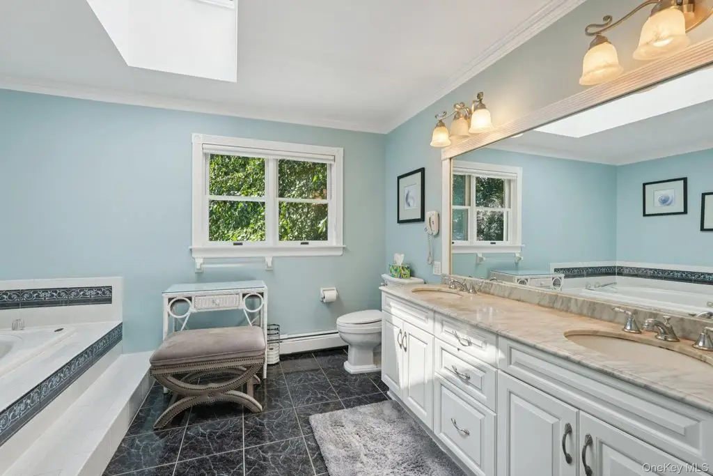Don't miss the chance to own this exceptional home in one of Clarkstown's most coveted neighborhoods! Step into timeless elegance in the highly sought-after Waters Edge community with this classic center-hall colonial, perfectly set on a beautifully landscaped, picturesque lot. Built in 1990 and lovingly maintained ever since, this residence blends space, style, and comfort in every detail. Offering 2,928 square feet of thoughtfully designed living space, this home is ideal for both relaxed everyday living and joyful entertaining. The inviting lemonade porch is the perfect spot for peaceful afternoons, while the oversized, sun-drenched eat-in kitchen featuring a large center island flows seamlessly to the expansive, serene backyard and large Trex deck, perfect for outdoor dining and gatherings. Just off the kitchen, a step-down den with a cozy fireplace sets the scene for intimate evenings, while the sun-filled living room with its decorative fireplace offers a warm and welcoming place to unwind. The spacious dining room, adorned with crown molding, is ready to host your most memorable celebrations. A full basement with a wet bar provides endless possibilities for entertainment and recreation. Every room reflects pride of ownership and features high-end finishes that enhance the home's inviting character. (Additional photos coming soon!)