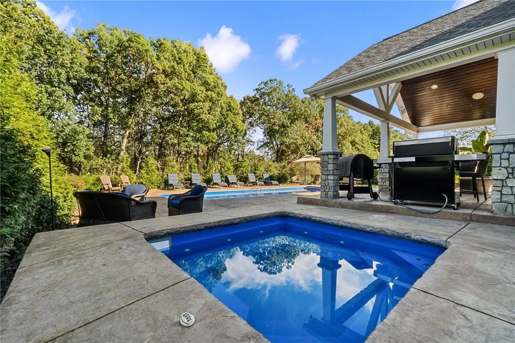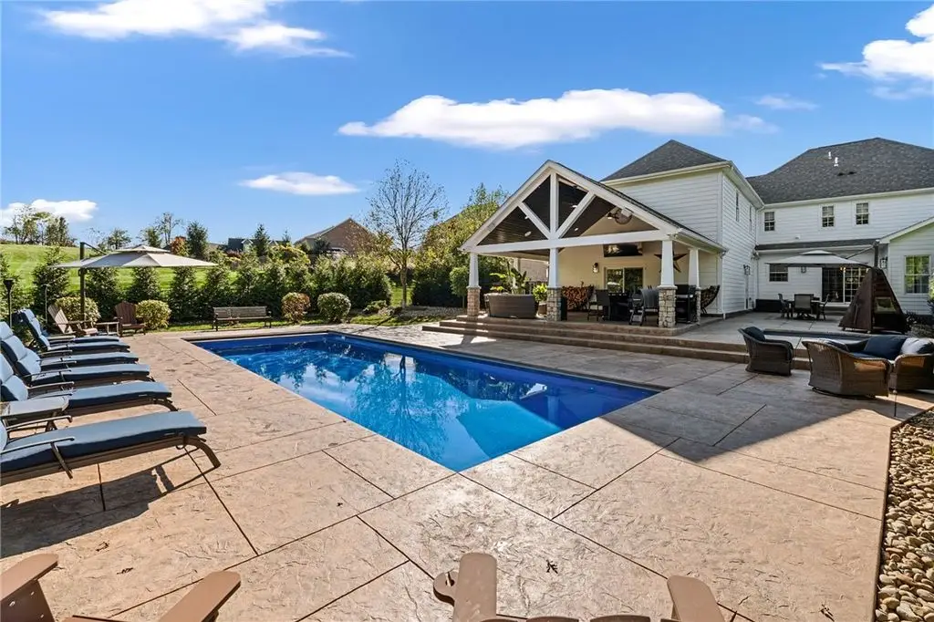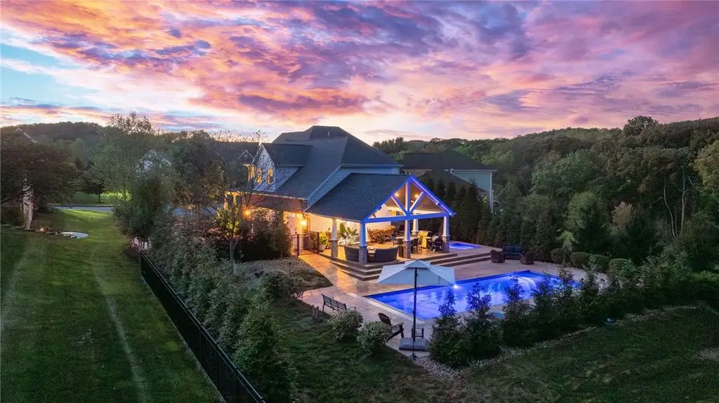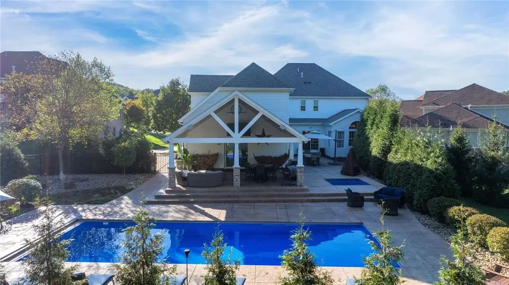 Welcome to this exceptional 12-year-old residence in the tranquil Mystic Ridge enclave of Cranberry. This stately brick and HardieBoard home offers 4 Bed, 4.5 Bath, plus a fully finished lower level boasting its own bath, bar, expansive family room, and a dedicated office. The 3-car garage is fully finished. Upstairs, the luxurious primary suite features a sitting area and large closet space. Two bedrooms share a large Jack-and-Jill bath, while the fourth provides an en suite. Outside is your own private oasis: a covered patio, vast stamped concrete terrace, large pool, hot tub, fully fenced yard, and lush, privacy-centric landscaping create a seamless indoorC/B?B=outdoor flow for gatherings or quiet relaxation. Situated on a quiet cul-de-sac, this home blends elegance, functionality, and seclusion. Mystic Ridge is a boutique community of just -45 homes offering low taxes and easy access to Cranberry's amenities. This is a residence built for living beautifullyC/B?B=and entertaining memorably.