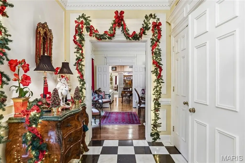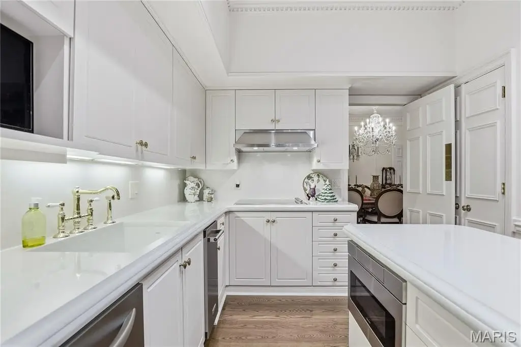 Discover timeless luxury in this three-bedroom, four-and-a-half-bath villa offering 3,368 square feet of refined living space. Beyond the gated brick courtyard, this home welcomes you with 12-foot-high ceilings, checkerboard Italian marble flooring, intricate custom moldings, and exquisite architectural details throughout. A newly renovated Kitchen is both stylish and functional, featuring quartz countertops, abundant storage, and premium finishes—perfect for both everyday living and entertaining. A charming dining area adjoins the Kitchen area. Soaring ceilings, exquisite chandeliers and lighting , attention to details and rich hardwood flooring flows throughout the main living areas, accented by Scalamandré designer wallpaper that adds a touch of sophisticated elegance. Each bedroom suite offers privacy and comfort, with luxurious baths and generous closets. An upper level offers flexibility for a third bedroom en suite bath or office. Additional Storage closet wrap around the upper level to provide an remarkable abundance of additional storage and a cedar closet. Additional highlights of this fee simple Villa include an inviting gated courtyard entry ideal for your relaxing or hosting guests. Do not miss the terra cotta brick–floored two car garage featuring crown molding, white birch paneling, heaters and a pair of ceiling fans. This fee simple villa combines classic design, modern amenities, and unmatched attention to detail—a rare opportunity for those seeking sophistication and comfort in a distinguished setting.