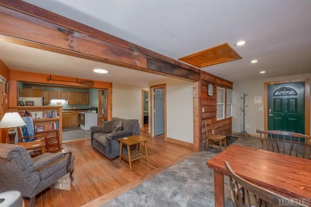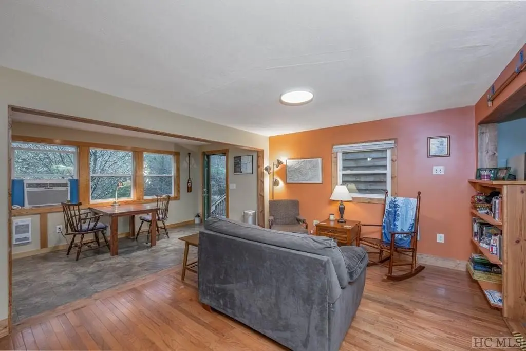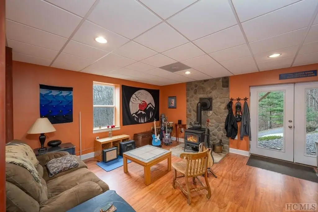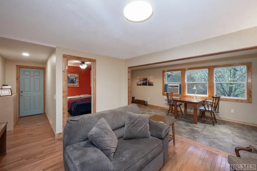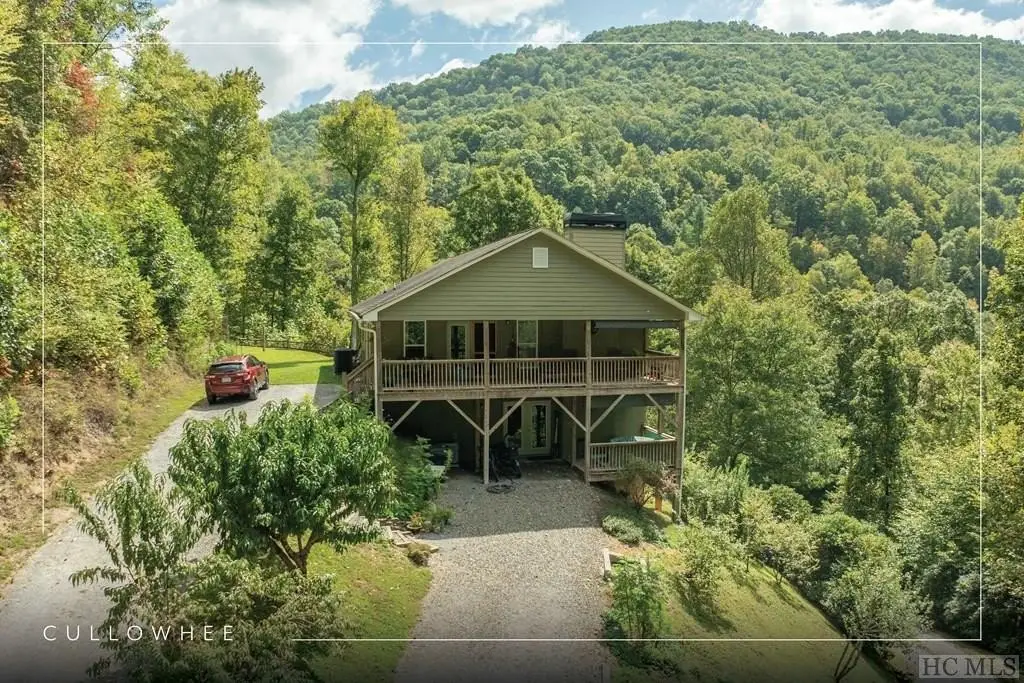 Discover a haven of tranquility and opportunity on 28.93 acres of serene forestland in Cullowhee. This unique property encompasses two parcels along the picturesque Cane Creek Road. The first parcel, Cane Creek Cottage, features a charming 1920-built residence with two bedrooms, one bathroom, a modest kitchen, and a cozy living area. A breezeway connects the cottage to a spacious classroom area with two half-bathrooms and potential for a variety of uses. The cottage boasts locally milled pine siding, while unvented wall heaters and a/c units provide comfort in all seasons. Outside, a large open porch and picnic area offer spaces for relaxation enhanced by the soothing sounds of Cane Creek. With ample parking and camping potential, this parcel can serve as an occasional short-term rental through platforms such as Hipcamp and Airbnb. The second parcel, 1443 Cane Creek Road, presents a spacious single-family home with four bedrooms, three bathrooms, and a HardiePlank exterior that complements stunning long-range mountain views. This home includes a firepit area, chicken coop, multiple garden spots, and two wood-burning stoves. Inside, an open floor plan joins the living, dining, and kitchen areas on the main level. This level also features the primary suite with an ensuite bathroom plus two guest bedrooms, one full bathroom, and laundry facilities. The lower level offers a third guest bedroom and bathroom, bonus room, secondary living area, full kitchen, and pristine utility space. Fiber optic internet ensures connectivity, currently provided by Optimum. Suitable for mixed-use residential or commercial applications, this property offers a multitude of possibilities in a beautifully secluded setting with proximity to downtown Sylva and Western Carolina University.
