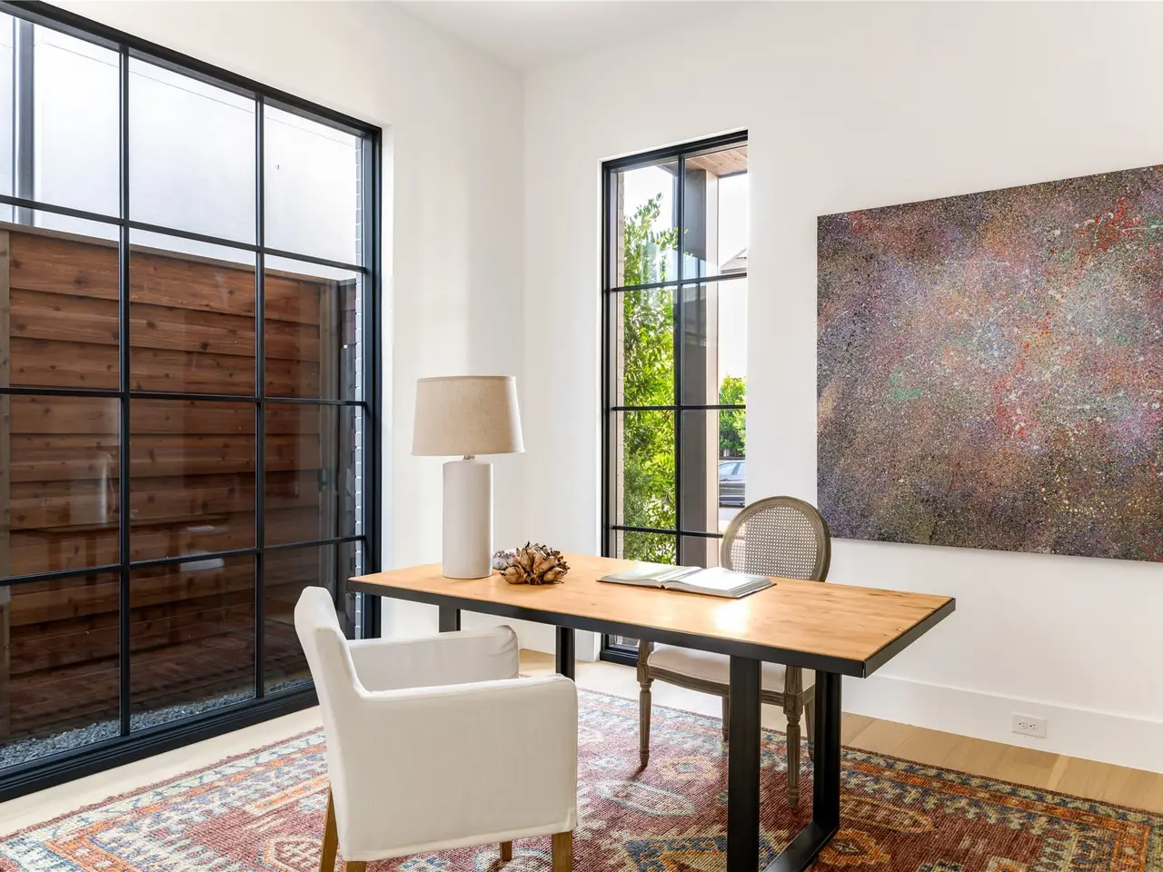 This newly completed home, finished in 2023, seamlessly blends modern features with timeless elegance, creating a truly luxurious living space. With 4,397 square feet of refined design, this residence is located in the prestigious Preston Hollow Village, offering easy access to an array of shops and restaurants within walking distance. Inside, the expansive downstairs living area is bathed in natural light, thanks to soaring 11-foot ceilings and floor-to-ceiling windows. The gourmet kitchen is a chef's dream, showcasing Wolf appliances, a Sub-Zero refrigerator, an ice maker, quartz countertops, and abundant storage. Adjacent to the kitchen is a private office perfect for a work-from-home lifestyle. Just off the living area, a gated side-yard provides the perfect space for outdoor living or pets. The primary suite is a serene retreat, featuring a luxurious ensuite bath, spacious closet, and dual vanities. Upstairs, youll find three additional bedrooms, each with its own ensuite bath, as well as a large living or media room designed for family enjoyment. This home truly offers an exceptional living experience!
