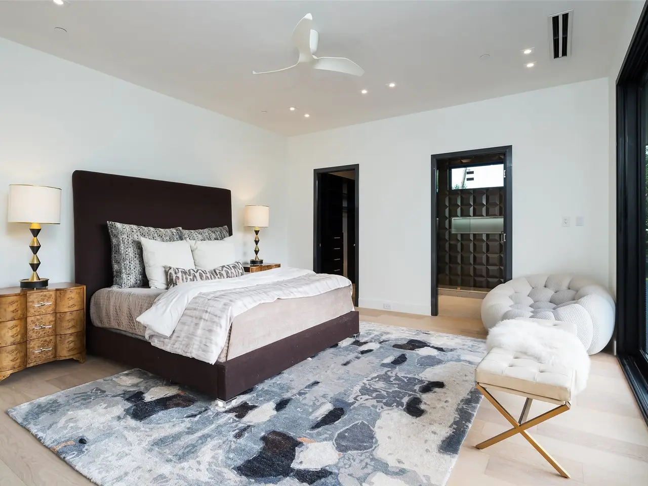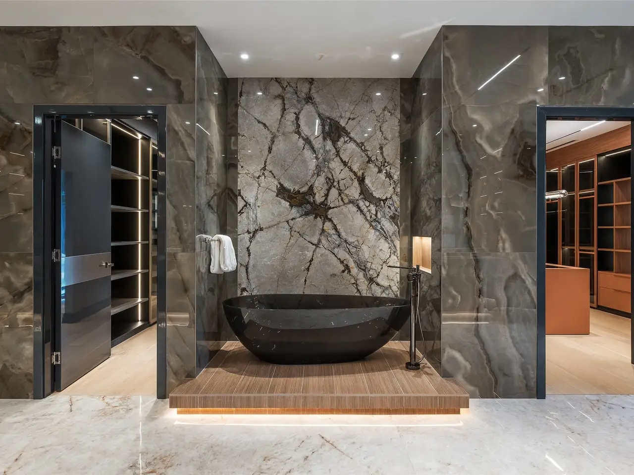 Spa-like bathroom with porcelain onyx and marble