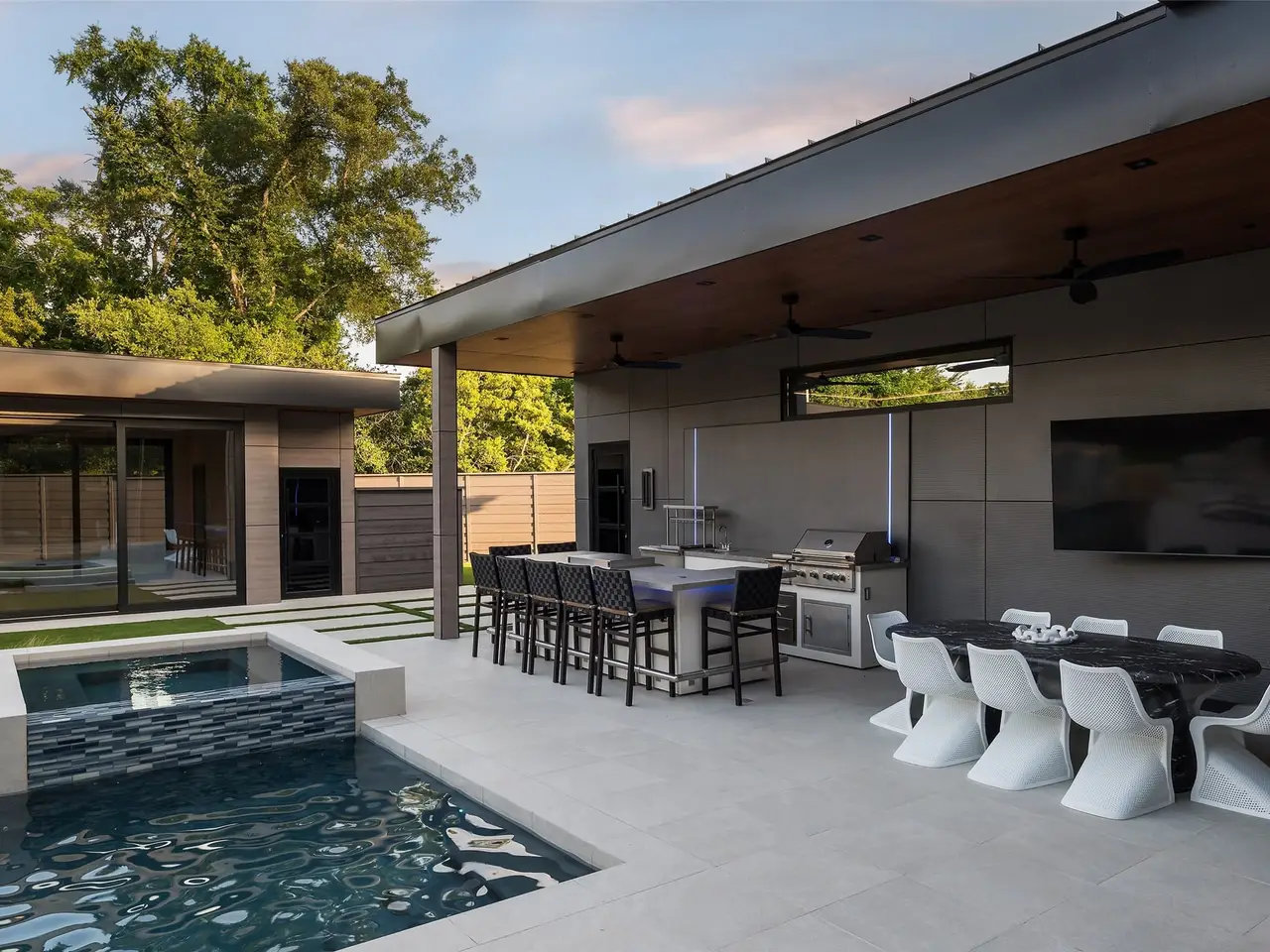 Heated pool with Alex Turco water feature