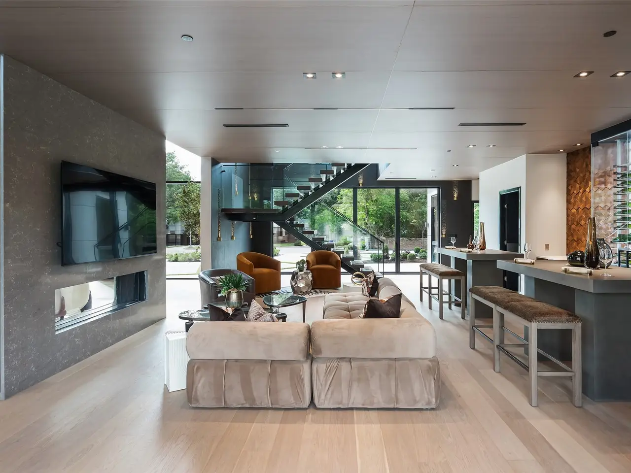 Nestled on an expansive .82-acre cul-de-sac lot in prestigious Preston Hollow, this newly constructed architectural marvel exudes unparalleled sophistication with 8500 SF in main house and a 600 SF casita. The marble slab cladding & circular driveway offers the WOW factor upon arriving at this masterpiece. Step inside & be greeted by soaring 20 ceilings and walls of glass that flood the home with natural light, creating an atmosphere of luminous refinement. The flawless first-floor design seamlessly integrates form and function, with formal living and dining areas adorned with a double-sided marble fireplace, luxurious wall paneling, & magnetic LED lighting. The stylish club room features high-top tables, a sleek bar, & a climate-controlled wine cellar. Sliding glass walls artfully separate the expansive gourmet kitchen, a culinary showpiece appointed with stone countertops, double islands, sleek Florense cabinetry, Thermador appliances, & designer lighting. A spacious pantry & separate back kitchen ensure flawless functionality. Just beyond, a media room invites guests to indulge in cinematic experiences or relax in casual luxury. The primary suite is a private sanctuary with a spa-like bathroom clad in porcelain onyx and marble, a dramatic black bathtub, impeccably appointed closets and built-in coffee bar. A secondary upstairs suite, an additional laundry room, and a stunning flamed Azure marble staircase with glass railing and walnut treads further elevate the home. Outdoor living is a symphony of luxury, boasting a heated pool with a mesmerizing Alex Turco water feature, a sunken firepit, an outdoor kitchen, and a turfed yard adorned with cherry trees and landscape lighting. A private casita with a kitchenette, full bath, and sauna offers impeccable guest accommodations or wellness retreat. Completing this modern marvel is a 4-car garage enhanced with designer lighting and bespoke wall coverings. This is the pinnacle of modern luxury living in Preston Hollow.