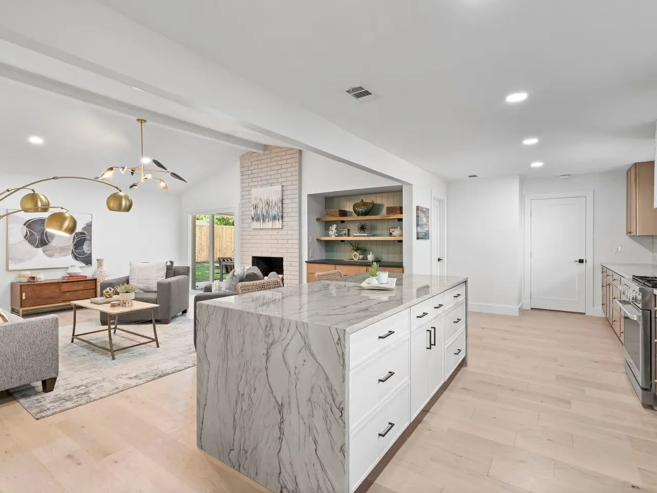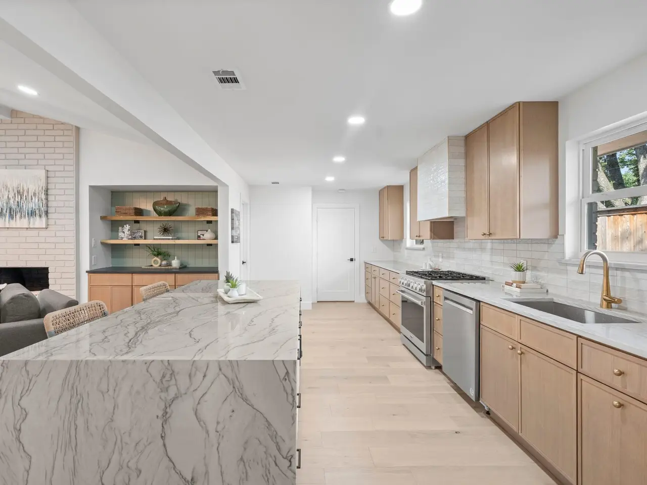 Welcome to your dream home in the heart of University Meadows, one of East Dallass most sought-after neighborhoods. This beautifully renovated 4-bedroom, 3-bath home offers 2,430 square feet of thoughtfully designed living space with an open floor plan ideal for both everyday life and entertaining. Vaulted ceilings and a gas fireplace create a warm and inviting living room, while elegant molding enhances the light-filled dining area. The custom Butlers pantry with coffee bar, Whirlpool wine chiller, and ample storage makes hosting effortless. Modern updates include new PVC plumbing, all new electrical with upgraded panel, white oak engineered hardwood floors, solid interior doors, smooth Level 4 painted walls, and designer light fixtures with can lighting throughout. The kitchen features custom natural wood cabinetry, Calacatta Fox quartzite countertops, a waterfall island, and premium stainless steel appliances including a 36-inch Thor gas range, Bosch refrigerator, and KitchenAid dishwasher. A spacious utility room with quartzite counters and custom cabinetry sits just off the kitchen. The oversized primary suite is a retreat with natural light, a sitting area, spa-like bath with dual sinks, soaking tub, oversized dual shower, and walk-in closet. A Jack and Jill bathroom connects two secondary bedrooms, and the fourth bedroom features a stylish ensuite bath with oversized shower and green tile. Outside, enjoy fresh exterior paint, professional landscaping, Austin stone flower beds, a covered porch, new cedar eight-foot privacy fence, new front door, and new windows throughout. Located on a nearly quarter-acre lot in highly desirable University Meadows, this home offers the perfect blend of character, thoughtful design, and modern updates just minutes from White Rock Lake, Hillside Village, restaurants, shops, and parks. Dont miss the opportunity to make this beautifully updated home yours and experience the very best of East Dallas living.