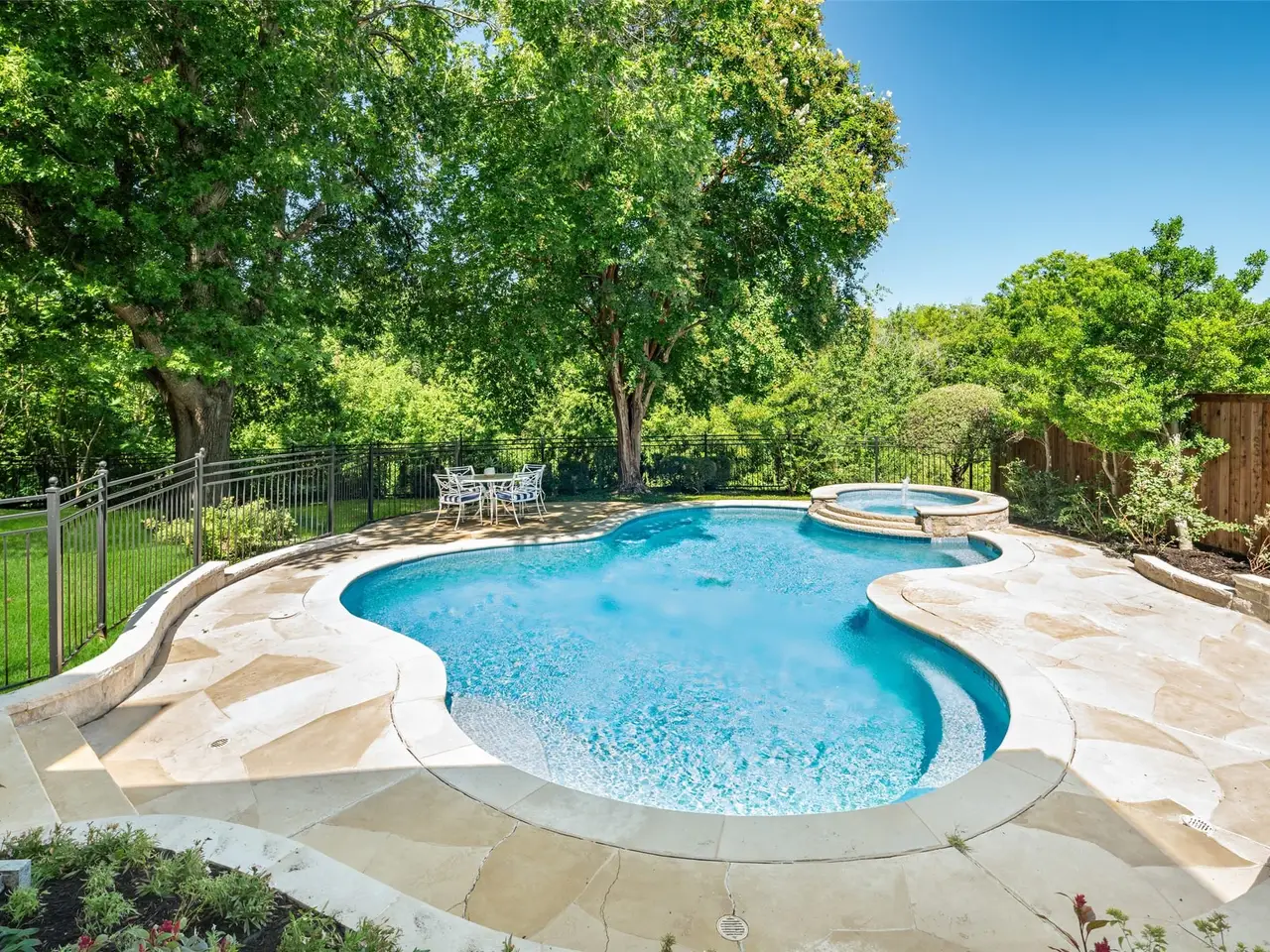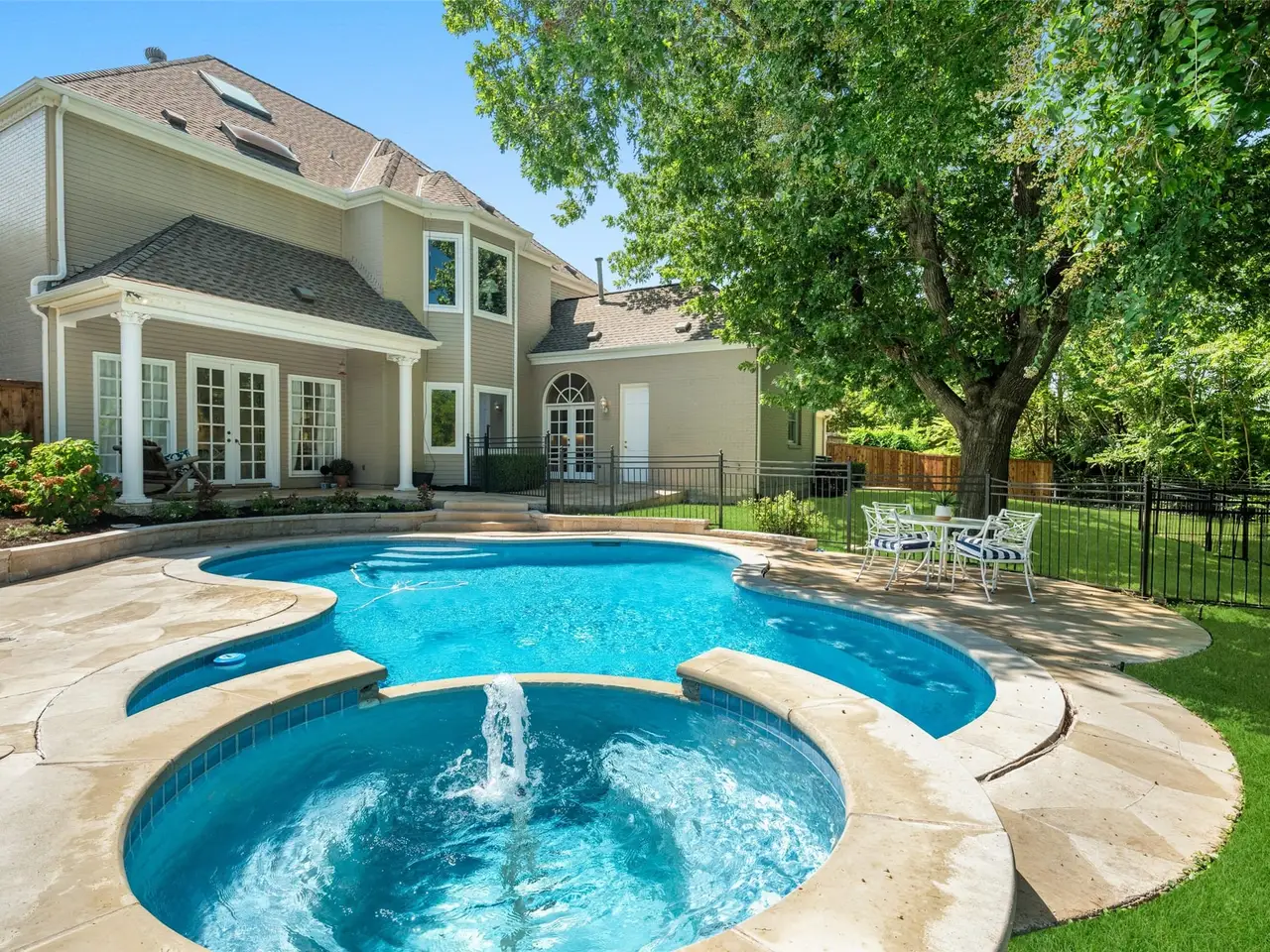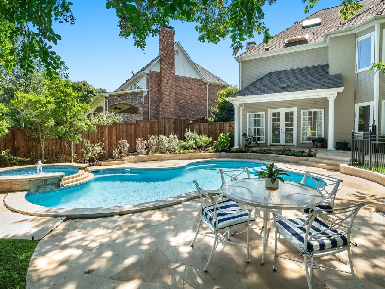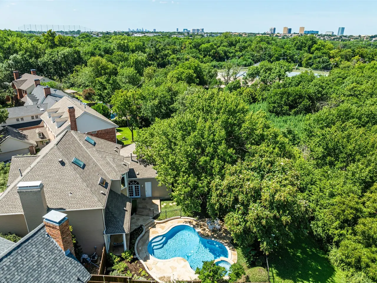 Welcome to 7215 Abrams Place Court, a stunning Lake Highlands home where timeless elegance meets everyday comfort. Nestled on a quiet cul-de-sac backing to a lush greenbelt, this beautifully maintained residence offers backyard privacy and views unlike any other setting in Lake Highlands - and all within the highly acclaimed Merriman Park Elementary zone. A two-story entry welcomes you with soaring ceilings and natural light, leading to formal living and dining areas, plus two additional living spaces and a wet bar, perfect for entertaining. The eat-in kitchen features a large island, abundant cabinetry, walk-in pantry, and built-in desk, with doors to a private grassy area gated from the pool and spa. A utility room with fridge, sink, and built-ins connects to the kitchen, alongside a two-car garage for convenience. Upstairs, the primary suite includes dual vanities, a soaking tub beneath a skylight, separate shower, and two walk-in closets. Two secondary bedrooms share a Jack-and-Jill bath, while a fourth room near the primary suite serves as a study or optional nursery. The third floor offers a very large bonus suite (254 x 158) with fresh paint, closets, and full bath an ideal, private guest suite with added flexibility as a play or game room. Two half baths, including one connected to the pool area, add convenience for family and guests. French doors from the main living room open to a covered patio overlooking the pool, spa, and greenbelt, creating seamless indoor-outdoor entertaining flow. High ceilings, abundant light, and thoughtful updates throughout make this home a perfect balance of comfort, style, and functionality, just minutes from White Rock Lake, parks, and trails.