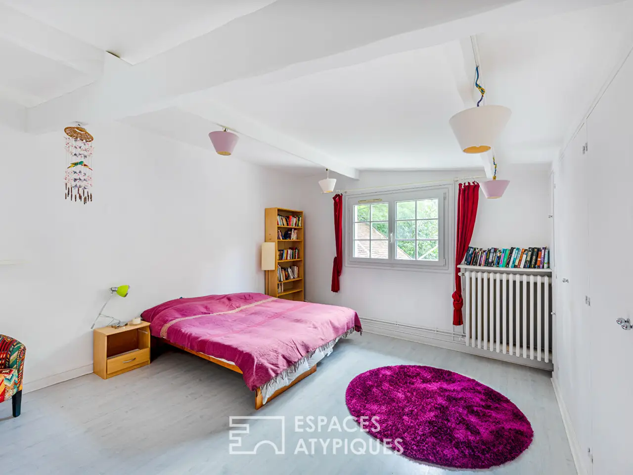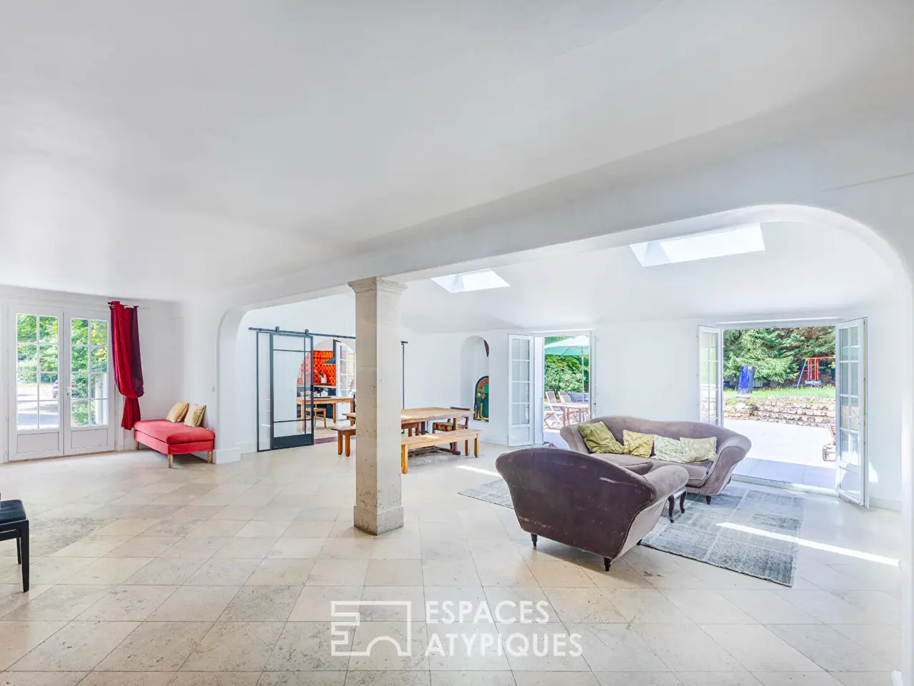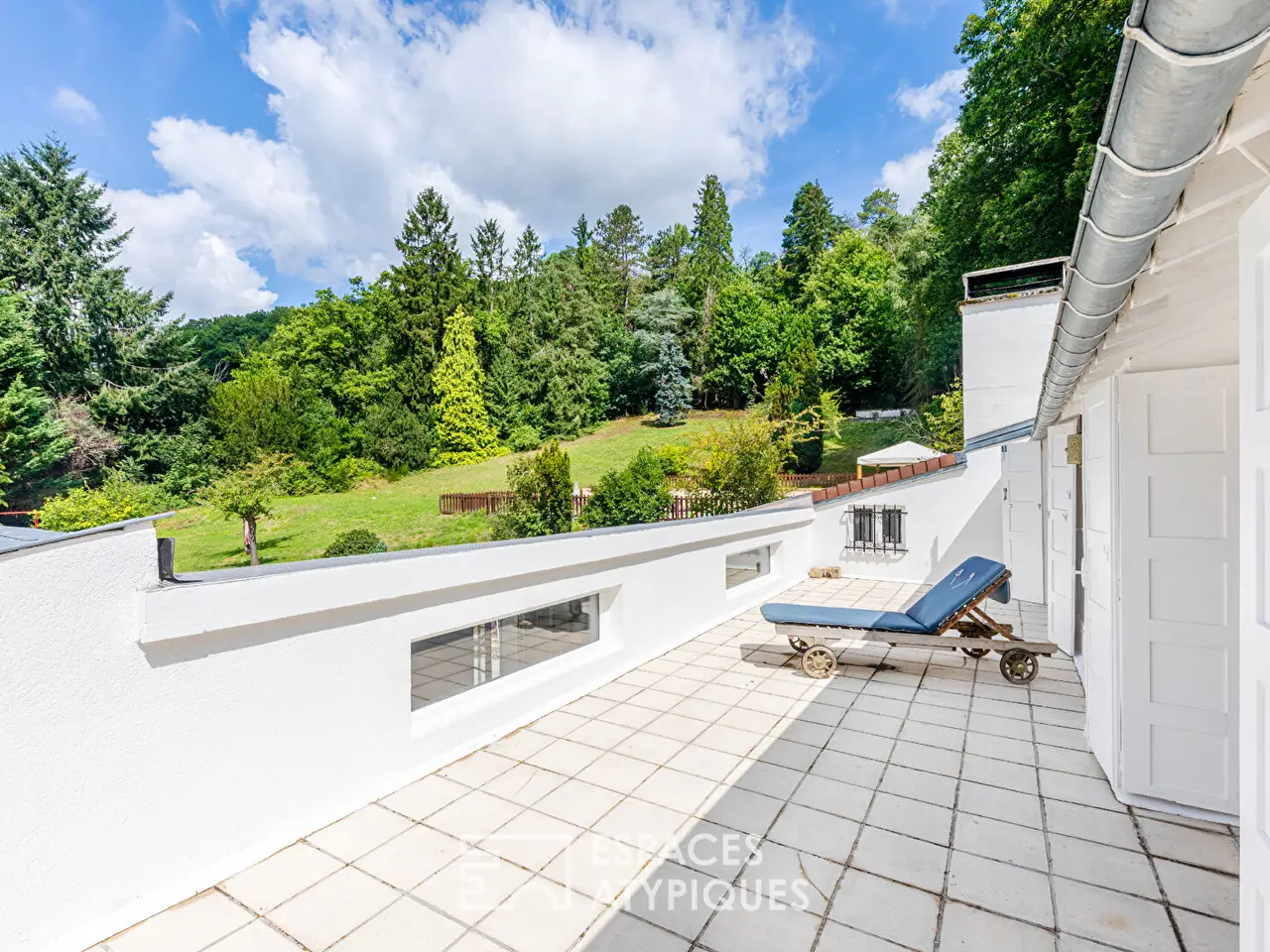 Nestled in the Chevreuse Valley, this beautiful 450 sqm house is set in a preserved 27,000 sqm park, between clearing, forest and a gentle way of life. A true contemporary refuge hidden from view, it combines modern lines and total immersion in nature. In absolute tranquility, this atypical property is revealed at the bend of a discreet path, offering a panoramic view of its wooded park. Its open and generous architecture, designed to interact with the outdoors, makes it a resolutely unique living space. Upon entering, the eye is caught by a spectacular living room of more than 150 sqm, enhanced by large bay windows. The separate kitchen, living room and dining areas blend seamlessly and elegantly. Upstairs, six comfortable bedrooms, accompanied by three shower rooms and two bathrooms, allow for harmonious family life. A separate studio apartment with a bathroom and separate kitchen completes the property, providing a touch of autonomy or flexibility depending on your needs. A few minor renovations will reveal the full potential of this home and fully adapt it to the desires of its future occupants. The grounds, punctuated by an elegant swimming pool and a charming perched chalet, create a truly holiday setting, ideal for relaxation and convivial moments. Just a few minutes from the center of Dampierre-en-Yvelines and 35 km from Paris, this rare property benefits from a privileged living environment, close to amenities and transport links to the capital. ENERGY CLASS: E / CLIMATE CLASS: E Estimated average amount of annual energy expenditure for standard use, established from energy prices for the years 2021, 2022 and 2023: between EUR12,190 and EUR16,560 REF. 12256 Additional information * 11 rooms * 7 bedrooms * 3 bathrooms * 3 shower rooms * Outdoor space : 27000 SQM * Property tax : 6 213 € Energy Performance Certificate Primary energy consumption e : 226 kWh/m2.year High performance housing
