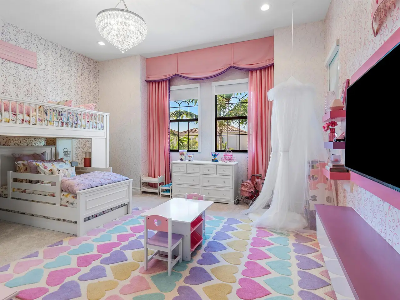 Experience elevated living in this exquisite Anabelle model nestled in the prestigious, guard-gated community of Seven Bridges. Meticulously designer-decorated, this expansive residence offers 5 bedrooms, 6 bathrooms, a versatile club room, loft, private pool facing the reserve, and a 3-car garage. Blending sophisticated style with everyday comfort, this home is the perfect backdrop for both elegant entertaining and relaxed living. Modern elegance meets vibrant personality with soaring ceilings, expansive windows, and sleek contemporary finishes throughout. The dramatic 2 story living room stuns with accent walls, chic circular LED chandeliers, and natural light pouring in from every angle. The open-concept layout flows effortlessly into the gourmet kitchen and living areas, continued... perfect for entertaining or relaxing at home. Upstairs, retreat to a sophisticated primary suite with a serene sitting area, custom lighting, and spa-inspired touches. A playful media room adds a splash of color and fun, while the loft provides flexible space for work, play, or lounging. From bold pops of turquoise to curated finishes and statement lighting, every inch of this home is thoughtfully styled for high-impact living. Enjoy resort-style amenities at the Seven Bridges clubhouse, including a full-service Prime 7 steakhouse, a state-of-the-art fitness center with group activities, indoor and outdoor full-court basketball, tennis, and a new pickleball complex (coming soon). Cool off in the lap pool or relax in the free-flowing resort-style pools - all part of a world-class lifestyle experience. This one-of-a-kind residence is a true standout - schedule your private tour today!