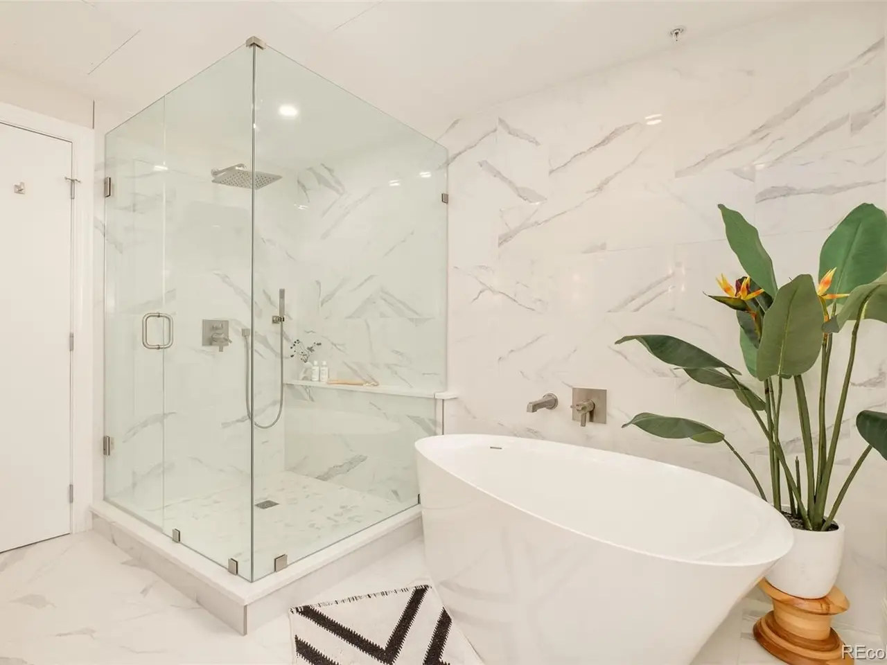 Spa-inspired 5-piece primary bathroom with freestanding soaking tub