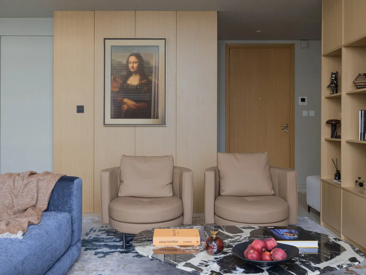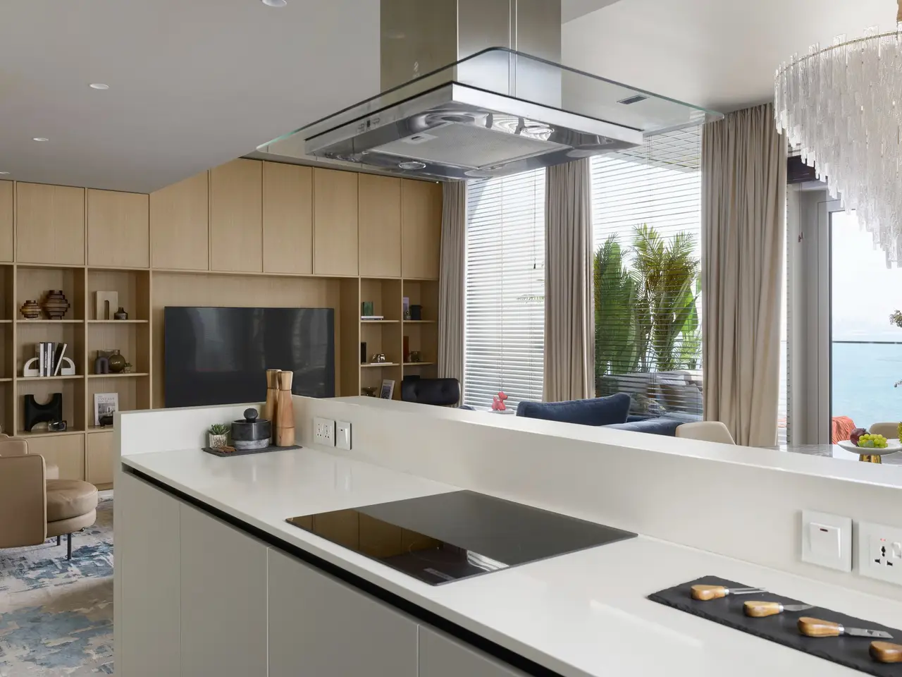 Savoir Properties presents this stunning, 3-bedroom apartment located in Bluewaters Residence, Dubai. The unit has stunning sea and park views and a modern design finish. Natural light streams in through floor-to-ceiling windows. The kitchen is fully furnished and equipped with white goods. A high-gloss-finished high-top kitchen island is also included.