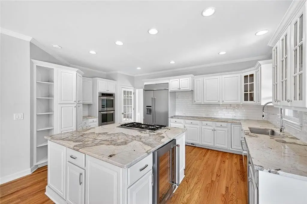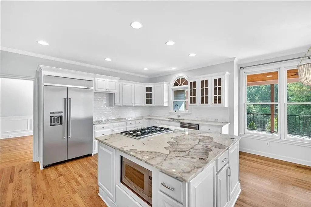 Stylishly remodeled, four-sided brick home in the conveniently located community of Whitehall. Only minutes to GA 400, Perimeter Center, Dunwoody Country Club and a variety of restaurants, parks, and medical services. Excellent schools and lower DeKalb County taxes. Built by John Wieland. Fabulous MAIN LEVEL features two story foyer, many new light fixtures, hardwood floors throughout, vaulted ceilings, and crown moldings. Remodeled kitchen with lots of storage and high-end KitchenAid, Bosch and Thermador appliances, oversized center island, gorgeous granite and new tile backsplash. Family Room features floor to ceiling stacked stone fireplace, and custom bookcases that span the length of the room. The main level is perfectly designed for entertaining! Enjoy a private, covered Trex deck for year-round entertainment featuring tongue-in-groove ceiling, fans, recessed lighting, and a linear gas fireplace with TV connections. UPSTAIRS with four spacious bedrooms, three full baths, hardwoods throughout and convenient laundry facilities. Primary Suite with beautiful bathroom and several spacious custom closets for incredible storage. Remodeled TERRACE LEVEL with home theater/media room, and bar/entertainment area. Fabulous guest suite with bedroom, sitting room and full bath. Additional laundry facilities and more storage. Terrific patio is perfect for grilling, dining, ping-pong and other games. You will love this beautifully remodeled home in this incredibly convenient location!!