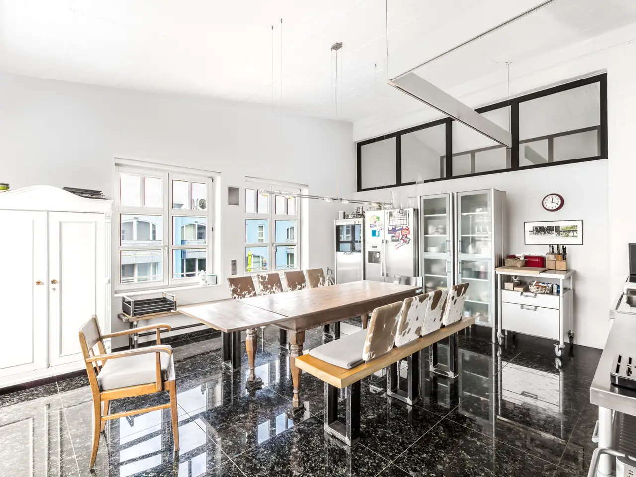 This exquisite loft is located in a former perfume factory and offers an exceptional living space of approx. 278 m². The property was built in 1985 and was last extensively modernized in 2019, as a result of which it presents itself in a very well-kept condition. The loft has a total of 6 rooms, including 3 spacious bedrooms, which can also be used as an office. Two bathrooms ensure maximum comfort, one of which is en suite and equipped with a free-standing bathtub. The open-plan living area with its impressive ceiling heights of up to 4 meters and electrically controllable skylights creates an airy, light-flooded ambience. High-quality oak parquet and marble floors as well as elegant wooden sash bar windows round off the luxurious appearance. A fitted kitchen that leaves nothing to be desired and Bose loudspeakers throughout the living area complete the exclusive living concept. Certainly the highlights: a green, ingrown sunny balcony and a spacious roof terrace with the option to extend. Both areas are perfect for spending sunny hours outdoors. In terms of technology, this property is equipped with a pre-installation for an alarm system, and modern Bose loudspeakers are also installed. New thermostats ensure efficient control of the indoor climate. For future requirements, there is the option of installing photovoltaic modules on the roof surfaces, which underlines the sustainability of the property. This offer is rounded off by an extensive parking solution: a garage supplemented by an outdoor parking space. There is also a cellar compartment for additional storage space. In summary, this loft offers exclusive living quality with a combination of modern comfort and elegant furnishings. Thanks to the extensive modernization of the building services and roof renovation in 2019 as well as the new gas heating from 2024 and the extensive insulation of the basement area this year, the property presents itself in a high-quality condition and is ideally equipped for the future. Do not hesitate to contact us for more information! Locations Düsseldorf Flingern-North Flingern-Nord is one of Düsseldorf's most popular and lively districts. The former working-class and industrial area has been transformed in recent years into a creative, trendy district with a unique charm. Tradition and modernity combine in a special way here - listed old buildings, charming courtyards and stylish loft apartments characterize the cityscape, as do hip cafés, small boutiques, galleries and a diverse gastronomic scene. Flingern-Nord is particularly popular with young professionals, creatives and families due to its urban atmosphere and good infrastructure. The central location provides excellent connections to the city center, the main train station and the Medienhafen - whether by car, bicycle or public transport. Several bus and streetcar lines as well as nearby S-Bahn stations offer ideal mobility throughout the city. Flingern-Nord also leaves nothing to be desired when it comes to local amenities and leisure activities: supermarkets, weekly markets, schools, daycare centers, gyms and doctors are all within walking distance. Green spaces such as the Flinger Broich or the nearby Volksgarten offer recreational opportunities in the middle of the city. Flingern-Nord is a district with character - creative, dynamic and full of quality of life. Features - Oak parquet / marble flooring - Bathroom with walk-in shower - Partial air conditioning - Skylights (electrically controllable) - Air conditioning device - Bathroom en suite with free-standing bathtub - Walk-in dressing room - impressive ceilings up to 4m - fitted kitchen - Wooden lattice windows - Roof covering and insulation from 2019 - New thermostats / underfloor heating - (interior) blinds - Bose loudspeakers - new sealing around the house - green balcony - new gas heating 2024 - new waterproofing and thermal insulation Type of parking 1 x outdoor parking space, 1 x garage, 40,000 EUR (sale) Other information An energy consumption certificate is available. This is valid until January 13, 2030. Final energy consumption is 117.50 kWh/(m²*a). The main energy source for heating is light natural gas. According to the energy certificate, the property was built in 1989. The energy efficiency class is D. On request, we will be happy to send you a detailed exposé with further information, a floor plan and a site plan or answer your initial questions by telephone! Thank you, we look forward to your inquiry or your call! Brokerage contract: You conclude a brokerage contract with VON POLL IMMOBILIEN if you use the services of VON POLL IMMOBILIEN with knowledge of the commission obligation. Commission: If you conclude a purchase contract that is attributable to the activities of VON POLL IMMOBILIEN, you as the buyer must pay the standard local commission to VON POLL IMMOBILIEN GmbH. The commission is due when the purchase contract becomes effective. Right of withdrawal: Your right of withdrawal is regulated in § 355 of the German Civil Code (BGB) and protects you as a consumer from contractual conditions. As a consumer, you have the right, under certain conditions, to withdraw from a contract that has already been concluded within the statutory periods by declaring your withdrawal. MONEY LAUNDERING: As a real estate brokerage company, von Poll Immobilien GmbH is obliged under § 1, 2 para. 1 no. 10, 4 para. 3 of the Money Laundering Act (AMLA) to establish and verify the identity of the contractual partner before establishing a business relationship. For this purpose, it is necessary for us to record the relevant data of your identity card - for example by means of a copy. The Money Laundering Act (AMLA) stipulates that the broker must keep the copies or documents for five years. OUR SERVICE FOR YOU AS THE OWNER: If you are planning to sell or let your property, it is important for you to know its market value. Have the current value of your property professionally asse