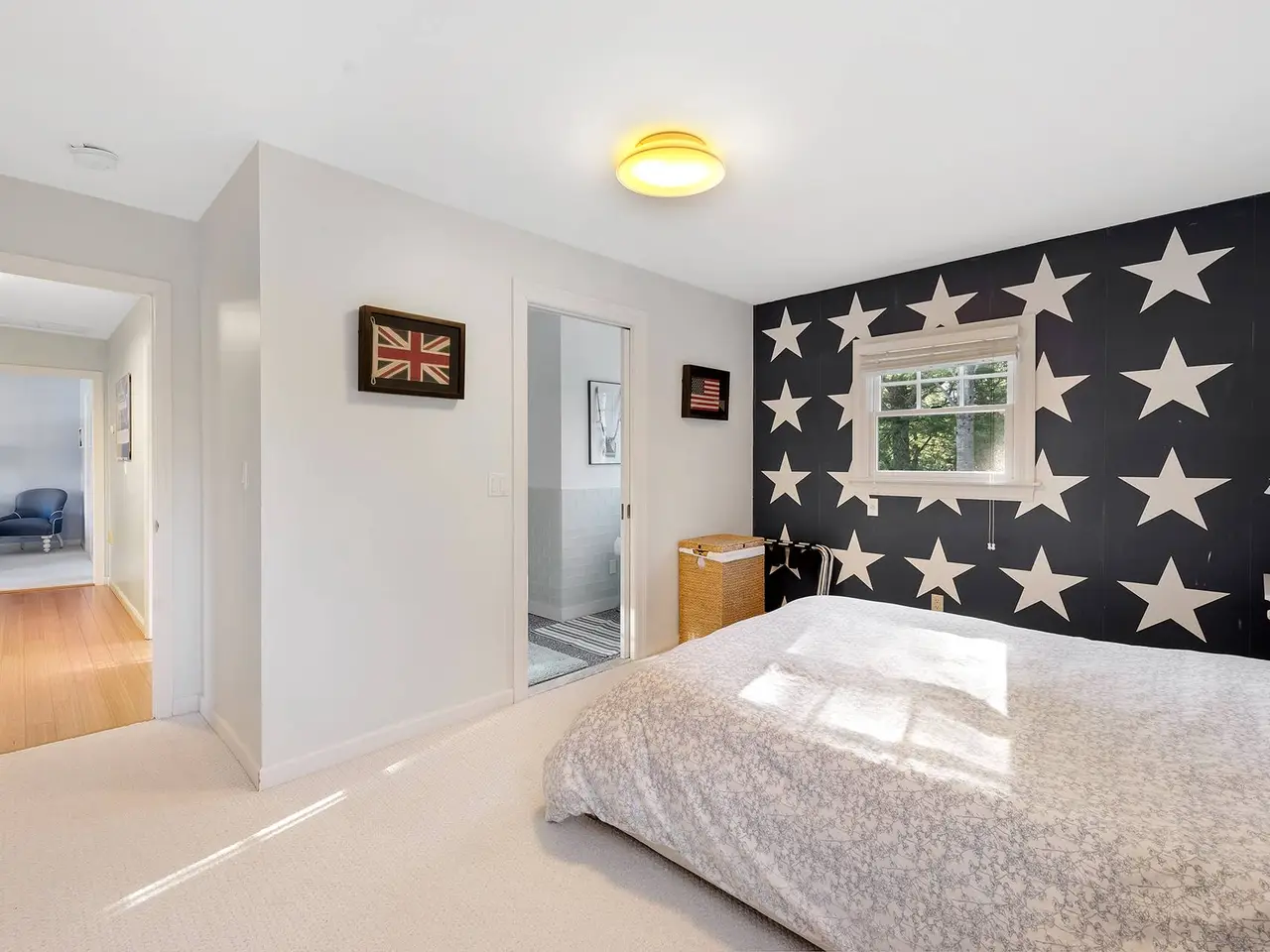 Ample bedroom/bath suite above garage