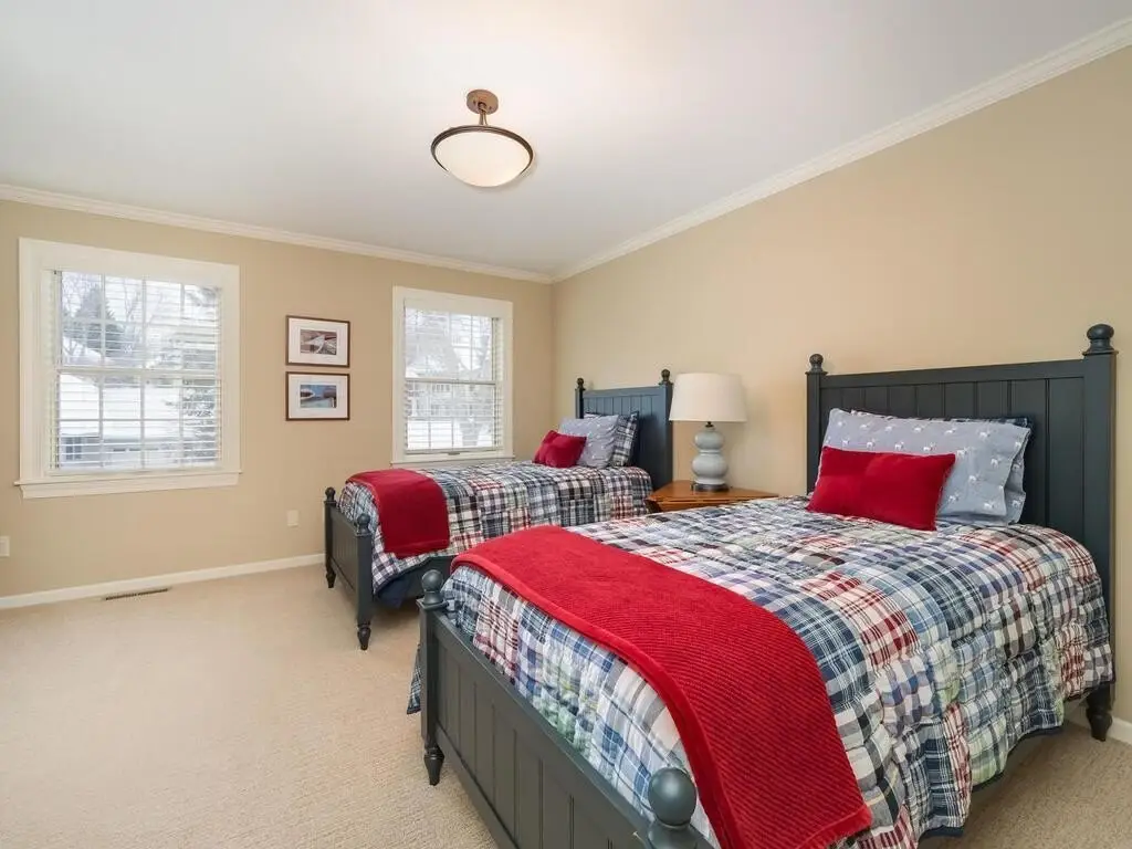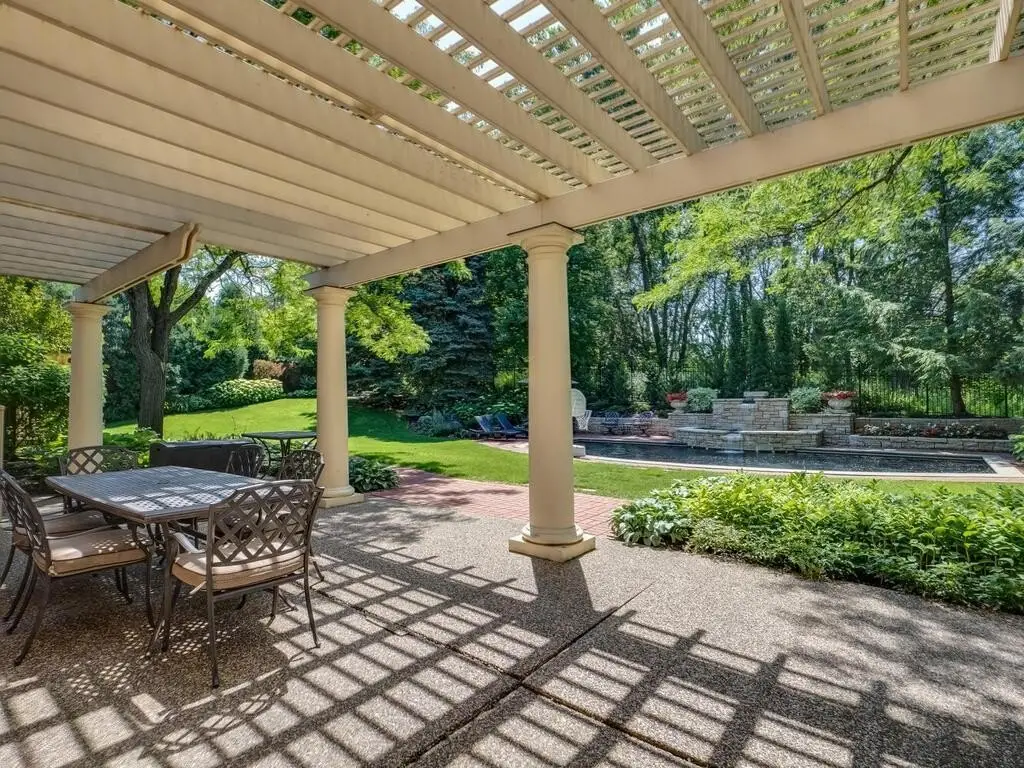Welcome to this impeccably maintained grand red brick Colonial, offering timeless elegance and modern luxury in a truly spectacular setting. Nestled among lush gardens, this home boasts an inviting in-ground pool, expansive patio space—perfect for entertaining—and a layout designed for both comfort and sophistication. Step inside the grand foyer with its sweeping staircase and discover a spacious open floor plan featuring gleaming hardwood floors, a stunning center island kitchen with high-end finishes, and a cozy stone fireplace anchoring the main living area. A dedicated main-floor office and formal dining room add function and elegance. Upstairs, you’ll find four generously sized bedrooms, including a luxurious primary suite with a walk-in closet and conveniently located laundry. The lower level offers incredible bonus living space with a built-in media center, wet bar, billiards room, exercise area, and abundant storage. This home blends classic Colonial charm with top-tier amenities, making it an exceptional opportunity for refined living and entertaining.