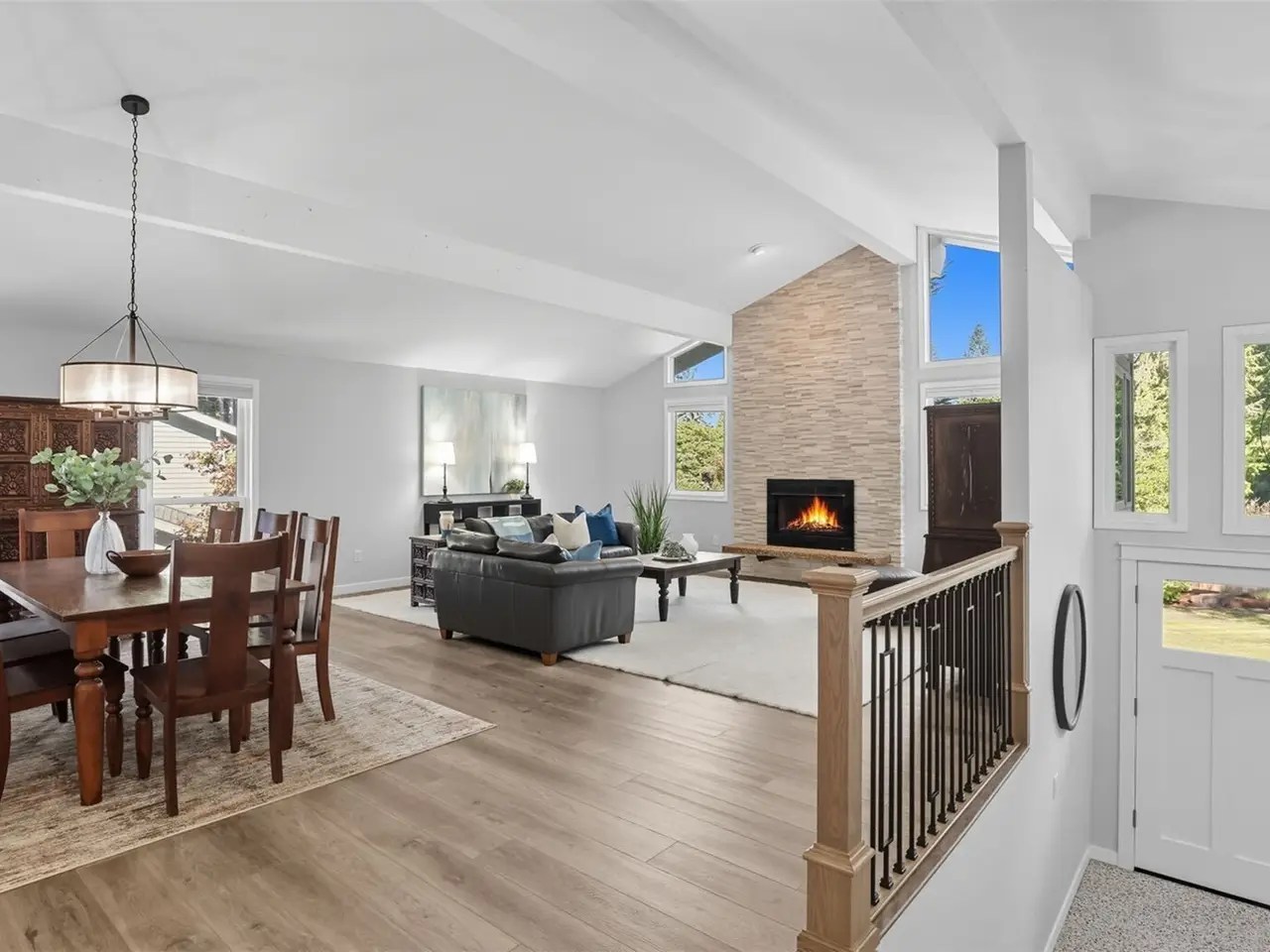 Experience luxury living in Edmonds' coveted Seaview! This stunning 5BD/3BA 3770+ square foot home blends modern updates with timeless style. Designer remodel offers warm color palette & move-in ready condition. Entertain with ease in the dramatic living room featuring 12' soaring ceilings & full height tile gas fireplace; chef's kitchen w/quartz island & pro appliances; & family room that opens to expansive 900 sf composite deck. Retreat to the primary suite with spa-like bath, dual closets & deck access. Downstairs offers space to play, work, or create in the rec room & oversized garage w/shop. Private, peaceful 1/3 acre fenced yard completes the picture. Newer Comp roof & exterior paint. Minutes to downtown Edmonds, parks & top schools!