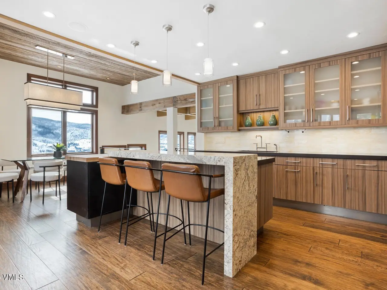 Vaulted ceilings with wood beams