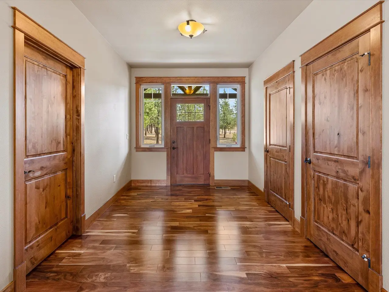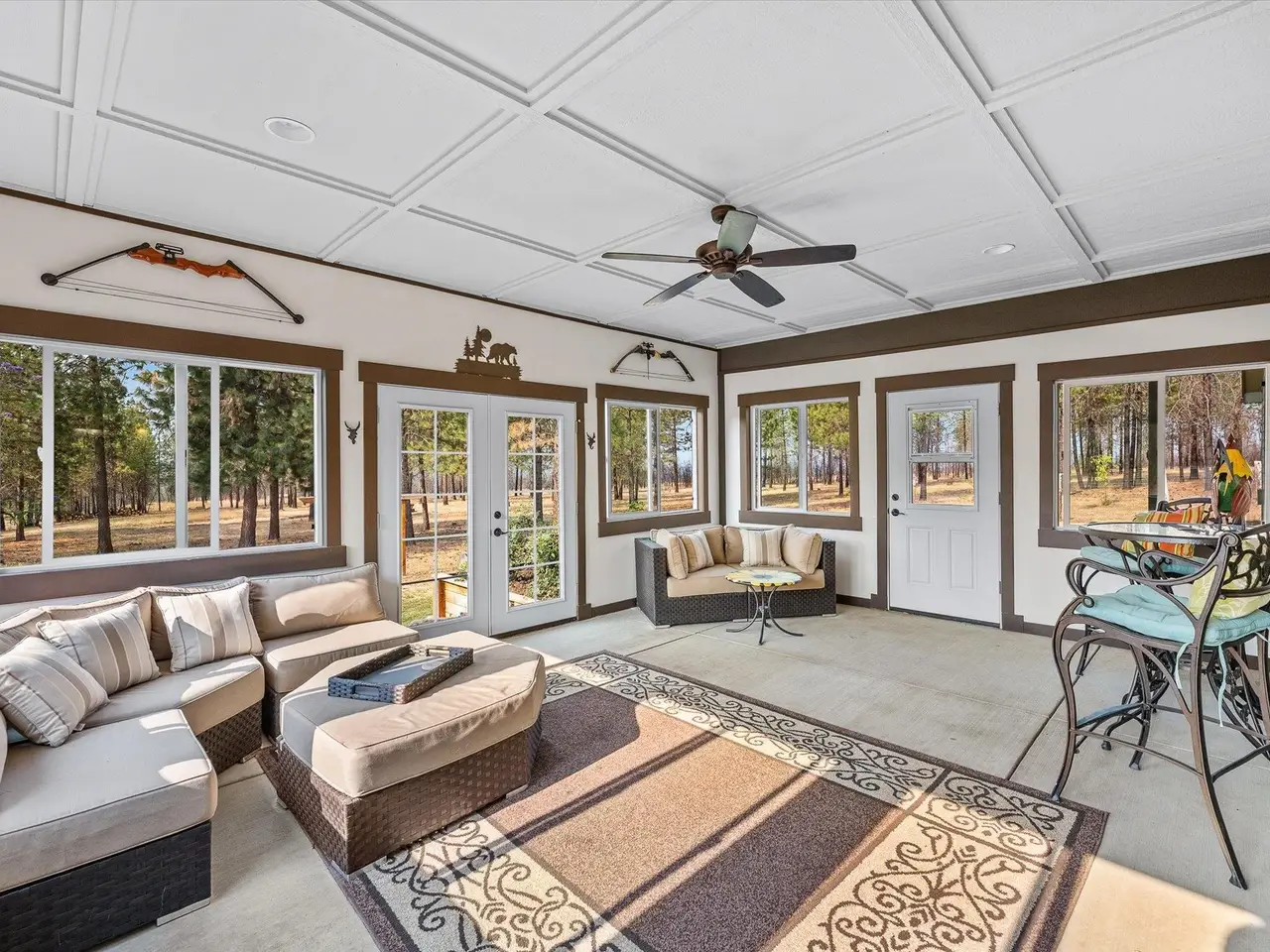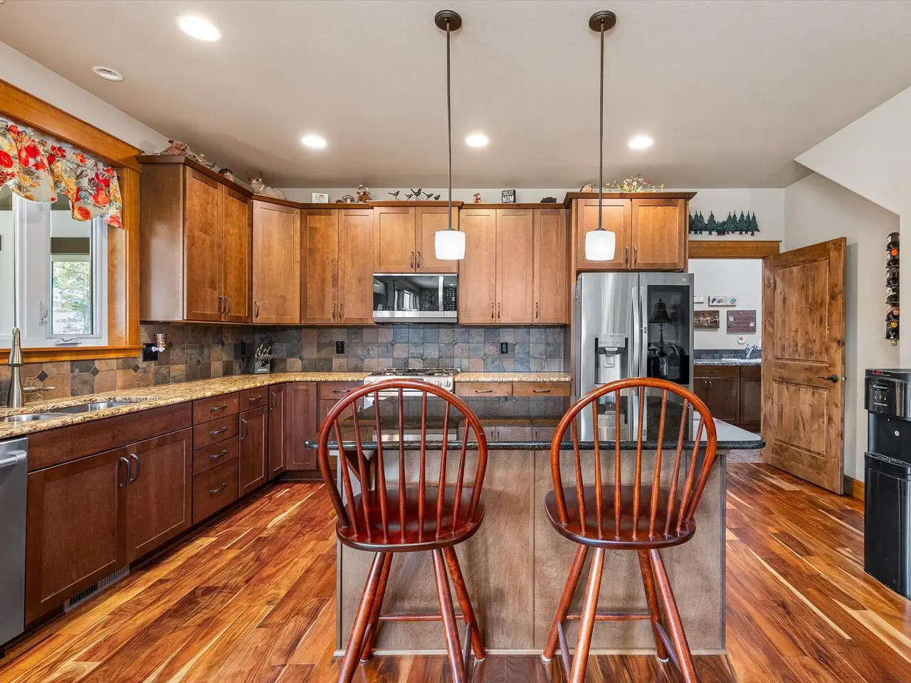 Discover a thoughtfully designed rancher by Tim Lewis, where rustic warmth seamlessly blends with modern, efficient floor planning-every square foot is purposeful. Centered around a river-rock fireplace, the living area offers both style and ambiance, with sweeping views of the front 19.55-acre parcel. Primary Suite opens into two walk-in closets and an inviting garden tub, creating the perfect blend of comfort and luxury. Three-Season Porch: Step into the serene outdoors from your porch-ideal for morning coffee and peaceful wildlife watching; deer and moose are delightful frequent visitors. An upper-level bonus room offers flexible potential-perfect for future bedrooms, a workspace, or a media lounge. A generously sized, oversized garage includes a handy workshop area-great for hobbyists, storage or project space. Beautifully custom crafted, thoughtfully balancing rustic character with modern utility, all within a design that respects your time and space. Enjoy the beautiful walking trails around the property.