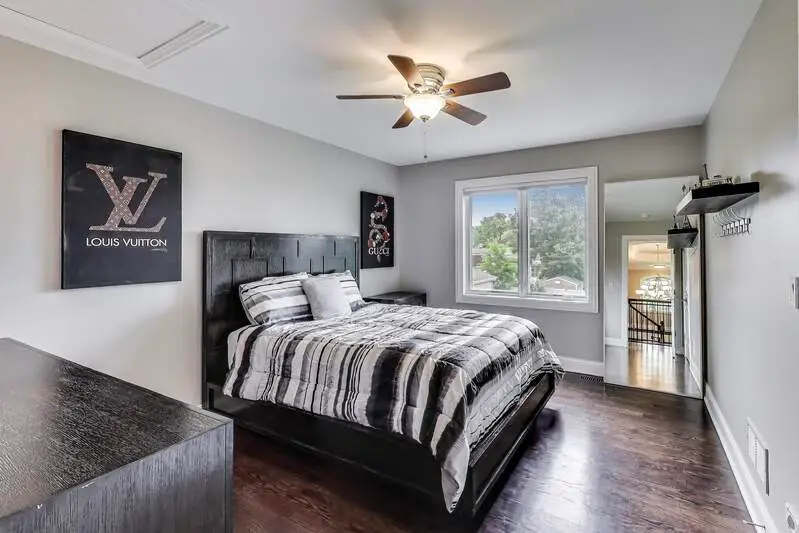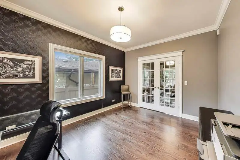Welcome to 554 W Crockett Avenue! Thoughtfully designed for both everyday living and entertaining, this 5-bedroom, 5-bath brick home offers space, comfort, and style on an extra-deep 180-foot lot. The main floor features a dedicated office, perfect for work or study, as well as an updated kitchen and expansive living areas with hardwood floors throughout. The primary suite is a true retreat, boasting a luxury renovated bath and two generous his and hers walk-in closets. All bathrooms on the first and second levels have been tastefully renovated, blending modern finishes with timeless design. The finished basement has a private movie theater (all equipment included) and additional living/flex space. Convenience abounds with two laundry setups-one on the main floor and another in the basement. Step outside to enjoy the paver patio and the large vinyl fenced in yard, offering endless potential for outdoor living and play. All this, just a short walk to Berens Park with its trails, playgrounds, and athletic fields. This home seamlessly blends elegance, comfort, and convenience-ready for its next chapter. Updates Include: Refrigerator 2025, Water Heater 2024, Ejector Pump 2023, Sump Pump 2023, Fence 2023, Primary Bath, Upstairs Baths and First Floor Bath 2022, Laundry Room + Washer/Dryer 2022, Two Lennox AC Units 2020, Two Ecobee Thermostats 2020.
