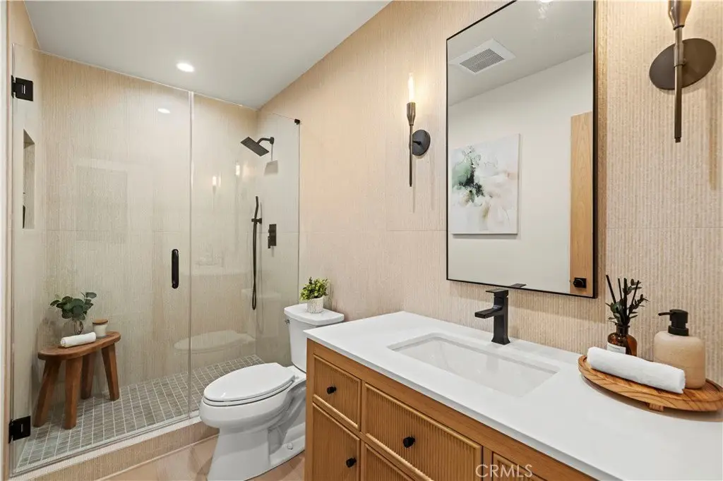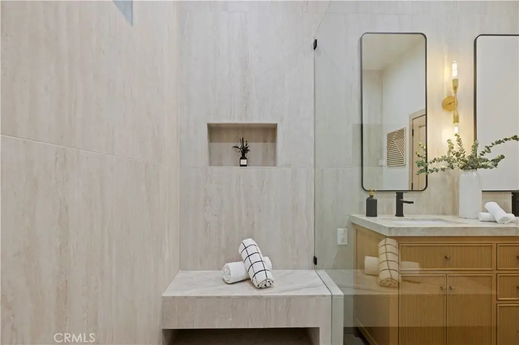 Welcome to this stunning custom-built home in Encino, perfectly situated on a generous lot! This organic modern 4-bedroom, 3.5-bath residence offers nearly 2,500 sq ft of beautifully designed living space with an open-concept indoor/outdoor layout—perfect for entertaining. From the moment you arrive, the wide frontage impresses with its expansive driveway and striking front entrance. Step inside and you’ll be greeted by a bright, airy floor plan that immediately sets the tone for sophisticated living. The formal living room at the front of the home is ideal for elegant gatherings, while the expansive great room offers the ultimate space for hosting luxurious indoor/outdoor events. The kitchen is a true showpiece, featuring floor-to-ceiling wood cabinetry, exquisite Taj Mahal quartzite countertops, and a full walk-in pantry. Adjacent to the kitchen, the sun-drenched dining area seamlessly connects to an oversized family room, where built-ins, custom shelving, and a cozy fireplace create the perfect evening retreat. Panoramic sliding doors open to a spacious deck and large backyard, creating effortless flow and extending your living space outdoors. The extra-large primary suite is a private sanctuary, complete with a walk-in closet and a luxurious spa-style bathroom featuring a double vanity and oversized shower. A secondary suite includes its own private bathroom, while two additional spacious bedrooms share a beautifully appointed bathroom at the front of the home. A separate laundry room and stylish powder room round out the interior amenities, offering total convenience and function. With thoughtful attention to detail and a well-planned layout, this home is designed to impress—featuring wood doors throughout, high ceilings, recessed and accent lighting inside and out, brand-new appliances, a finished garage, an oversized driveway, and lush landscaping. Plus, there’s plenty of space to add a sparkling pool - seller has a permit ready for you! This home truly has it all—style, space, and sophistication. Welcome home!