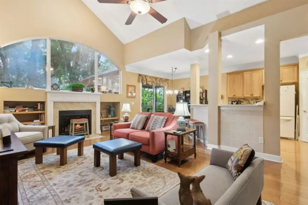 AFFORDABLE SOUTH ISLAND LIVING.......ATTRACTIVE AMELIA ISLAND HOME at 95184 Mackinas Circle with SOUGHT AFTER FEATURES: WOOD FLOORING, FIREPLACE, vaulted ceiling, tranquil backyard space.....GATED COMMUNITY located between Ritz-Carlton and Amelia Island Plantation....Original owner home in EXCELLENT CONDITION......four Bedrooms, two and a half baths, DOWNSTAIRS PRIMARY SUITE, dining room, living room plus GREAT ROOM....OPEN KITCHEN with light wood cabinetry, breakfast bar and breakfast area....SCREENED BACK PATIO to expand your living space....5 MINUTES to: BEACH ACCESS, golf, tennis, miles of walking/biking paths, multiple south end restaurants, Harris Teeter grocery/pharmacy/gas station....Located in smaller comfortable Summer Beach neighborhood with tree canopied streets.