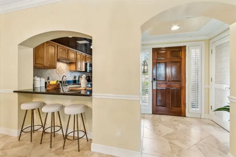 Rare opportunity in Windsong Villas, a premier oceanfront community located on the southeastern side of Amelia Island Plantation. This spacious 2-bedroom, 2.5-bath, 1960 sq. ft. ground-floor villa is ideally situated near the heated community pool and only steps to pristine beach and sparkling Atlantic Ocean. This beautiful end unit with ample windows and abundant natural light, features a peek-a-boo ocean view from the expansive patio. The interior blends Mediterranean Charm and Coastal Elegance with graceful archways ways, crown molding, and an open-concept layout. The custom kitchen with stainless appliances and tiled backsplash flows into the open dining area with a large wet bar, making it ideal for entertaining. The large inviting living area extends seamlessly to the patio, creating a serene indoor-outdoor retreat. The large primary suite with direct patio access has a bonus sitting area that can be used as an office or reconfigured for a third bedroom. The one-car open garage with a private storage closet for your convenience. Weekly rentals allowed. Schedule your showing today!