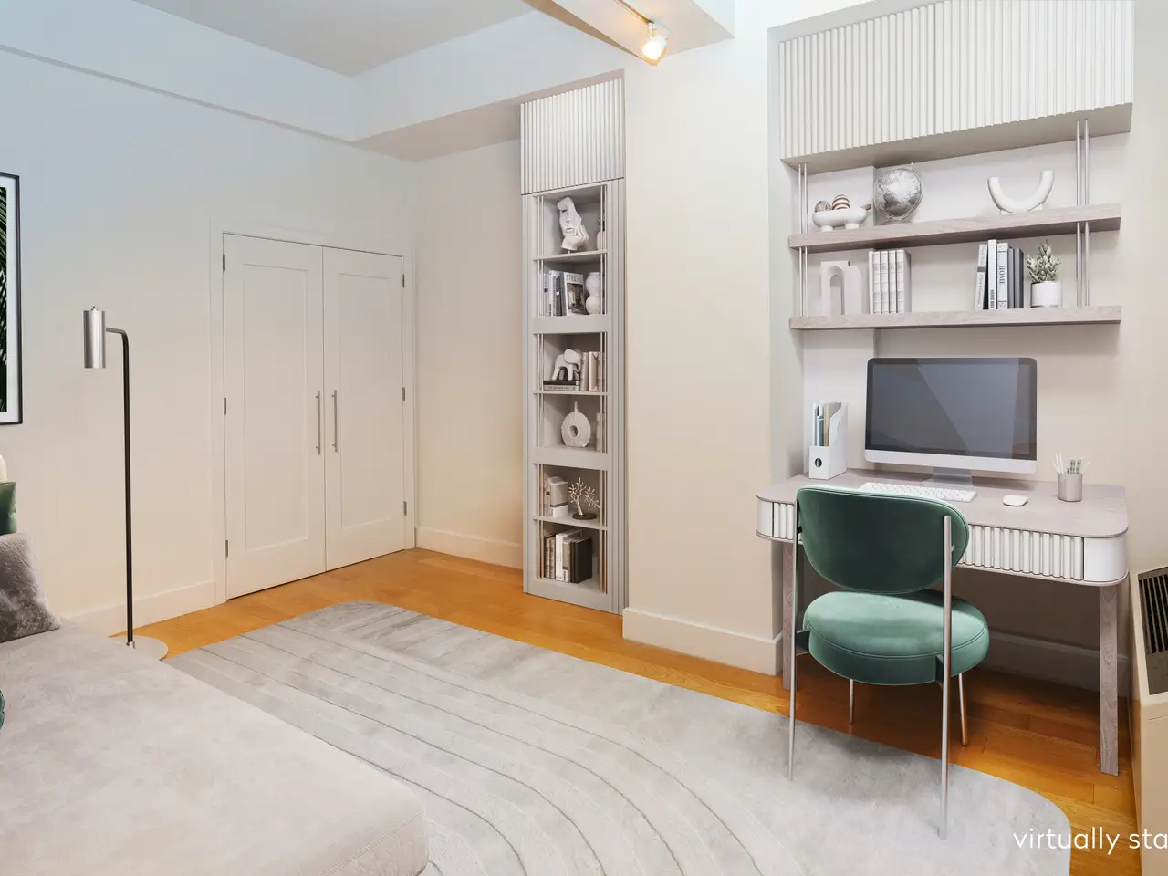 Now available at the iconic 99 John Street Deco Lofts Condominium a large versatile 1,026 Sqft 1BR-2BA with a large home office/2nd bedroom. The unit features 11 ft beamed ceilings, beautiful wide slat wood floors, a beautiful renovated kitchen with Caesar Stone countertops, Electrolux S/S appliances and an open breakfast bar. The bathroom is finished with Calcutta Marble tiled floors, counter tops, and back splash, offering a chic, clean back drop. There is ample closet space half outfitted with rods and shelving so organization is never an issue. Realizing the importance of space in New York City living; the layout is used to the utmost. 99 John Street is an amazing full service art deco condo offering a whole host of amenities while maintaining very low common charges. Amenities include a 24-hour doorman, luxury fitness room, children's playroom, residents' lounge, large outdoor Zen garden with grills, wrap-around roof deck with cabanas, valet service, separate indoor bike storage, and garage parking for an additional fee. 99 John is a block from the entrance to the Fulton Center complex (1/2/3, A/C, 4/5, N/R, J/Z, and PATH trains) and one minute from three large supermarkets including one within the building and a Whole Foods opening on Wall Street this year.
