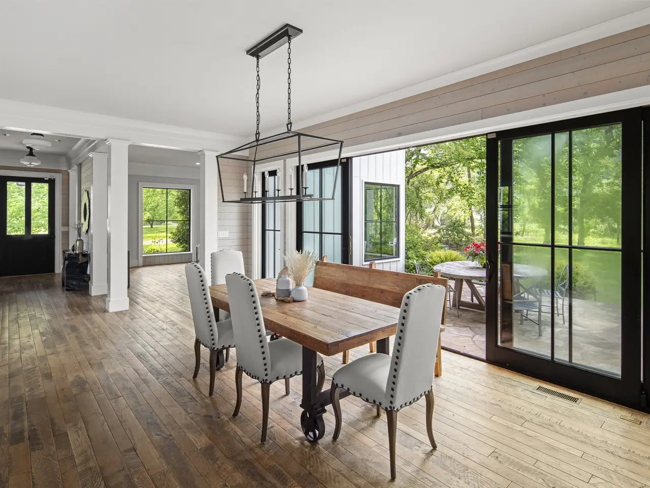 Nestled in the serene mountains of Western North Carolina, this modern farmhouse sits on over 10 private acres along a stocked trout stream. The estate features a spacious 4-bedroom main house, each bedroom with its own en suite bath, complemented by a cozy 2-bedroom guest house. You'll also find a barn with a stable, a charming chicken coop, and pens for other farm animals, all surrounded by ample pasture space perfect for livestock or gardening. A detached garage houses a home gym and sauna, supporting a healthy, whole-body lifestyle. This inviting retreat offers the perfect blend of privacy and simplicity, ideal for those seeking a peaceful mountain lifestyle with plenty of room for animals and outdoor living?all just 6 miles from Whole Foods, 7.5 miles to Fresh Market, 7.5 miles to the entrance to the Blue Ridge Parkway, 13.7 miles to Beautiful Biltmore Estate, and all the fabulous shopping and dining in between!