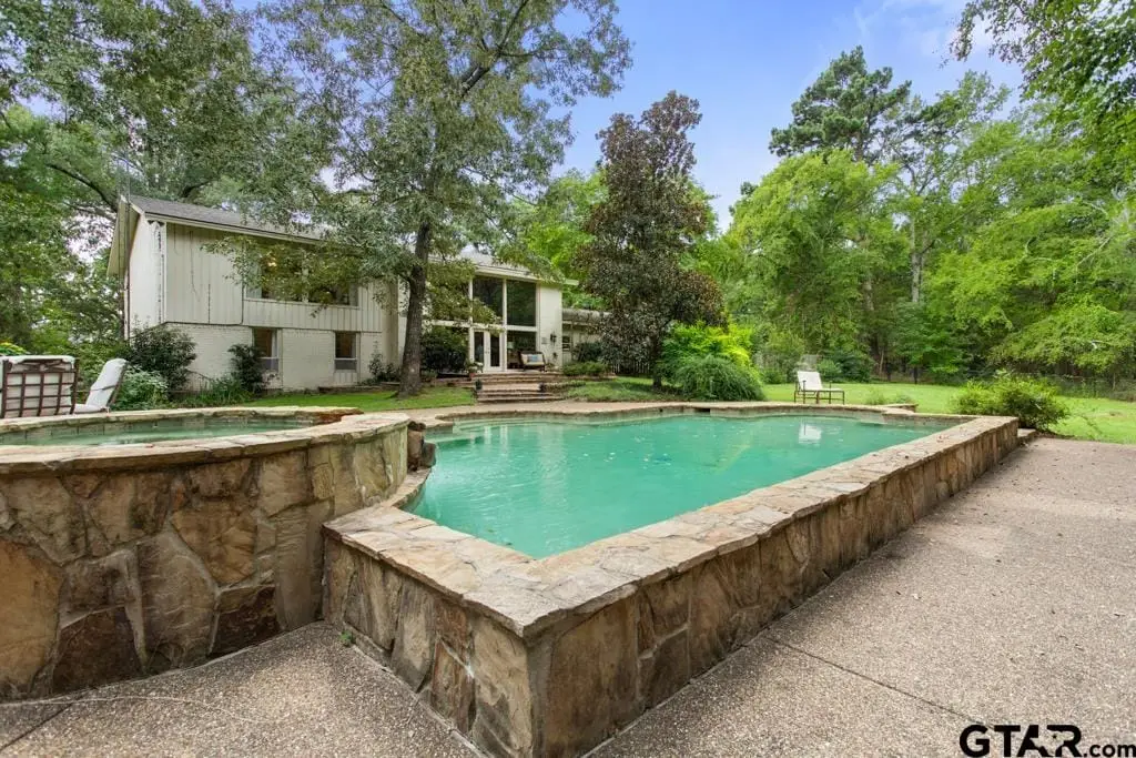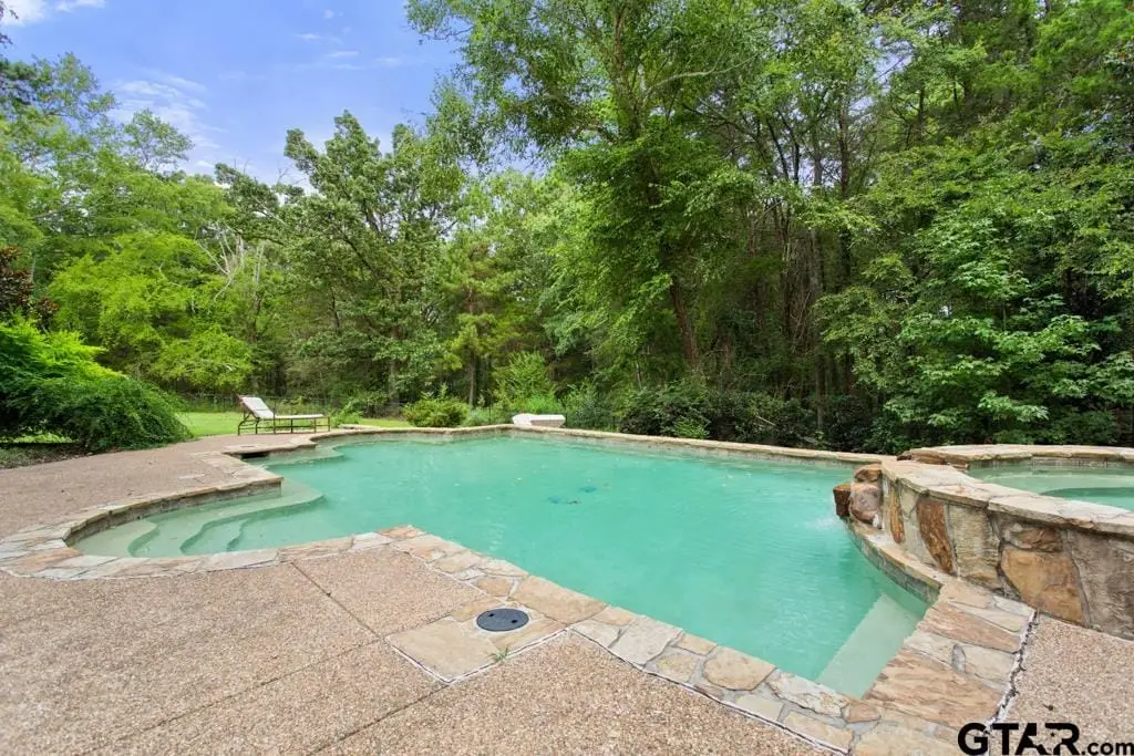 Welcome to Cedar Cover Farm, a stunning 27.6 acres offering both beauty & versatility. About 70% of the land is covered in mixed hardwoods, creating a private, scenic setting, while the remaining 30% features two hay meadows' perfect for horses, cattle, or simply enjoying open space. The custom-built home was designed with both comfort & character in mind. The spacious family room showcases a soaring ceiling, fireplace, & a dramatic wall of 10-foot built-in bookshelves complete with a rolling library ladder. A wall of windows overlooks the backyard retreat, where a sparkling pool, hot tub, & outdoor fireplace create the perfect gathering space. The formal dining room features charming brick floors, while the wet bar with icemaker is ideal for entertaining. The kitchen is filled with natural light & includes Saltillo tile floors, granite countertops, SS appliances, &a large walk-in pantry. The main suite offers picture windows with backyard views, dual bathrooms & two large walk-in closets. A private office or optional 4th bedroom adds flexibility. Guest bedrooms each include ensuite baths & generous closet space. A well-planned laundry room with storage completes the interior. Beyond the main home, the property includes a guest casita with full bath, a pole barn, & a small pond'adding even more appeal to this rare find. Cedar Cover Farm combines the peace of country living with thoughtful design & timeless craftsmanship.