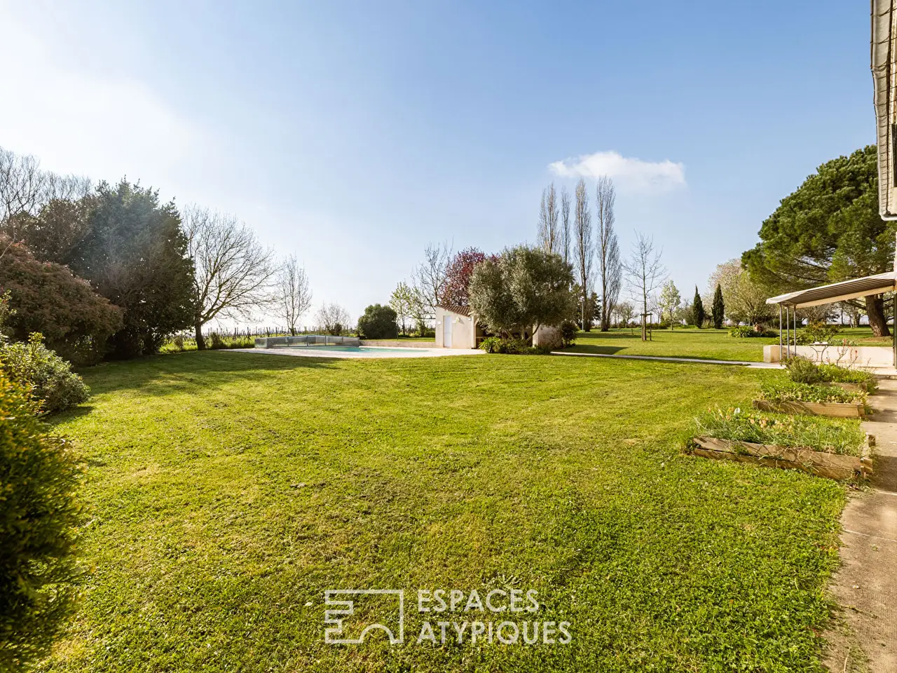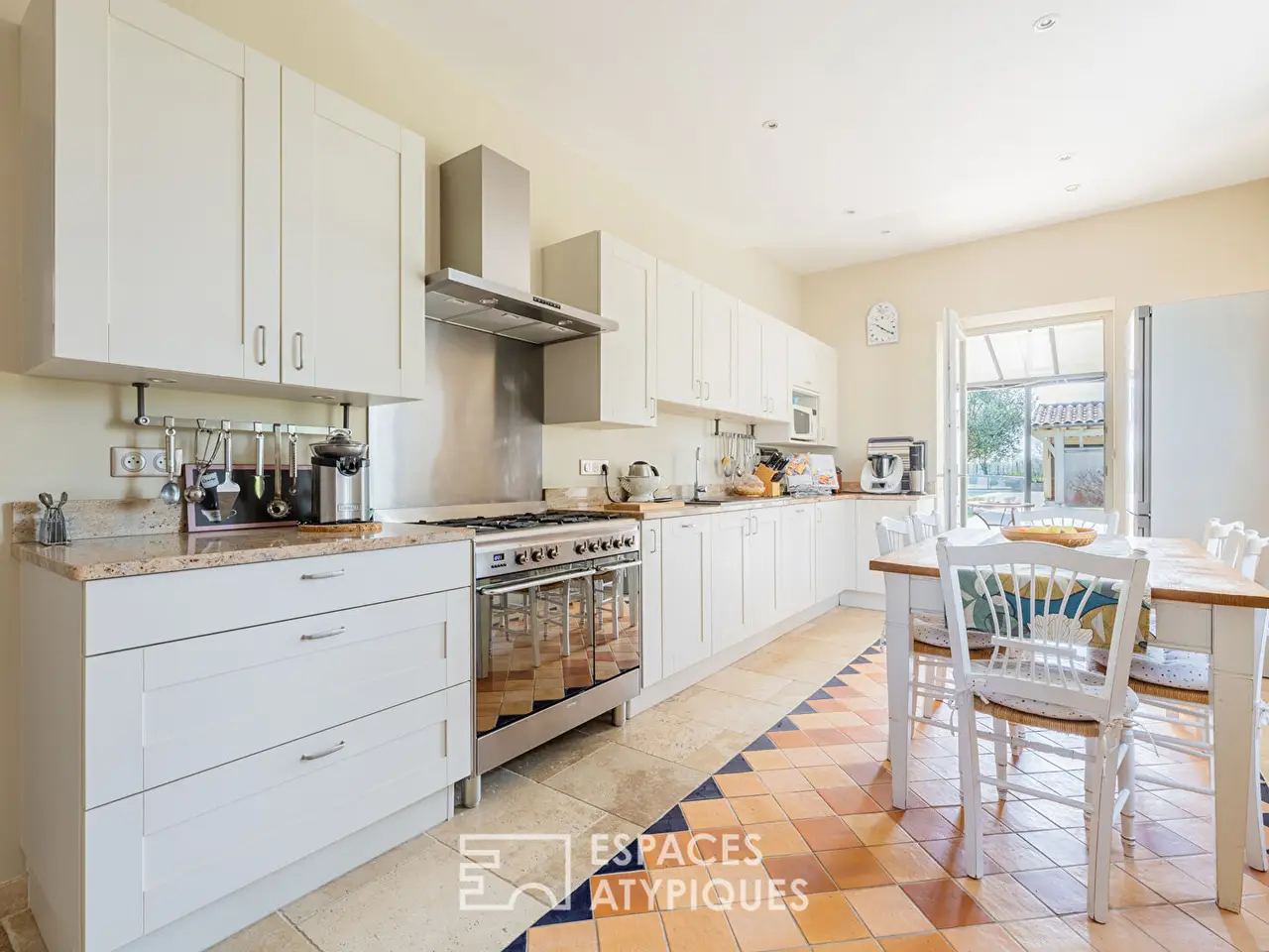Built at the bend of a small street in the place called Floirac, a town in the heart of the Estuary a stone's throw from Mortagne-sur-Gironde, the property boasts a magnificent interior and exterior space.From the courtyard, the house stands proudly and incorporates the aesthetic codes of old Charente buildings, placing the property in an 18th-century era.The entrance is imposing. The checkerboard tiling and the splendid stone staircase leading upstairs fully contribute to the impression of entering a refined house, a sensation enhanced by high ceilings and great light. To the right and left of the entrance, two pleasant reception rooms stand out and perfectly represent the balance found in the renovation, between the preservation of an old style and the comfort of modernity.Thus, the fireplaces and stone walls sit alongside recent joinery and a travertine floor heated by a heat pump. Designed to be practical for everyday use, the ground floor was designed to preserve spaces dedicated to everyday living. A spacious office and two bedrooms with a shower room promote a single-story lifestyle, as does a functional laundry room.The kitchen, modern in its equipment and practical with its scullery, maintains this balance and leads to a particularly well-kept exterior.The upper floor constitutes the keystone of the family home. It offers six well-appointed bedrooms and two shower rooms, as well as a large games room. The exposed framework extends throughout the rooms with a unique aesthetic, preserving passage heights for easy movement. But this property has other assets to complete its versatility.An outbuilding of over 50 m2, converted into a one-bedroom apartment and currently used as a gite, completes an already large capacity. Finally, a wine storehouse and a former stable form nearly 400 m2 of additional undeveloped outbuildings, which allow for future developments. Outside, the space also dominates with a garden of more than 6,500 m2 offering absolute calm and an unobstructed view of the vineyards.The large swimming pool surrounded by a beach is welcome to fully enjoy the landscaped garden and the tranquility of the place. A perfectly well renovated property with a large reception capacity, in a green setting close to the tourist sites of the Estuary and 30 minutes from Royan.ENERGY CLASS: B / CLIMATE CLASS: A. Estimated average amount of annual energy expenditure for standard use, established from the average energy prices for the years 2021, 2022 and 2023: between EUR2,790 and EUR3,820.REF. EALR1942Additional information* 13 rooms* 8 bedrooms* 1 bathroom* 2 shower rooms* Outdoor space : 6500 SQM* Property tax : 1 996 €Energy Performance CertificatePrimary energy consumptionb : 104 kWh/m2.yearHigh performance housing*A*104kWh/m2.year3*kg CO2/m2.yearB*C*D*E*F*GExtremely poor housing performance* Of which greenhouse gas emissionsa : 3 kg CO2/m2.yearLow CO2 emissions*3kg CO2/m2.yearA*B*C*D*E*F*GVery high CO2 emissionsEstimated average annual energy costs for standard use, indexed to specific years 2021, 2022, 2023 : between 2790 € and 3820 € Subscription IncludedAgency feesThe fees include VAT and are payable by the vendorMediatorMediation Franchise-Consommateurswww.mediation-franchise.com29 Boulevard de Courcelles 75008 ParisInformation on the risks to which this property is exposed is available on the Geohazards website : www.georisques.gouv.fr