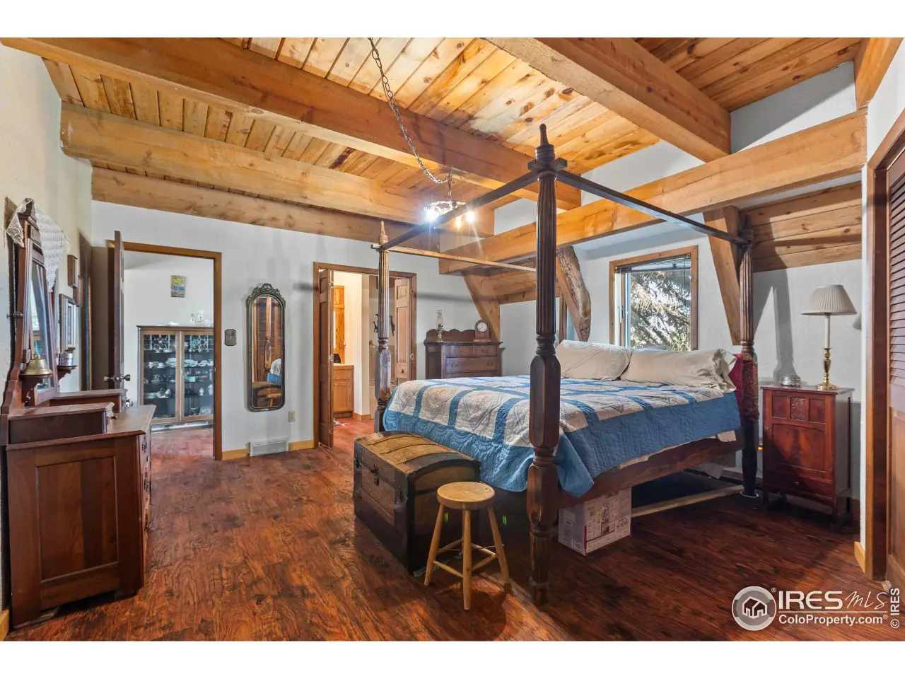 Nestled on a 5.75-acre parcel, this extraordinary home offers unmatched privacy and stunning views of the Front Range, including Longs Peak and the foothills. Surrounded by 120+ acres of open space, a reservoir to the south, and Boxelder creek and open space to the west, enjoy serene living amidst nature. The property features gorgeous mature landscaping and is adjacent to Mountain Vista Golf Course, perfect for outdoor and golf enthusiasts. This 3-bed, 3-bath home exudes personality and charm, with solid construction and open vaulted ceilings that create a spacious feel. A huge deck provides the ideal space for entertaining or relaxing while taking in the breathtaking scenery and the sounds of Boxelder Creek. Experience the perfect blend of seclusion, natural beauty, and distinctive design in this one-of-a-kind retreat.