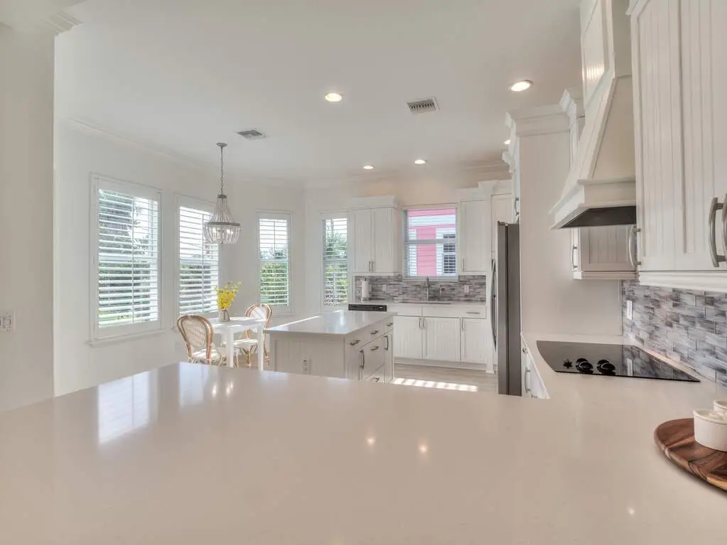 • Quartz counters with stainless steel appliances