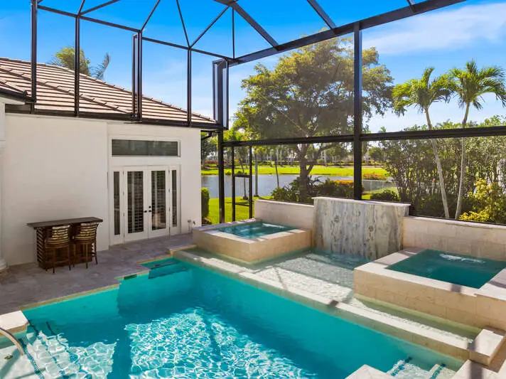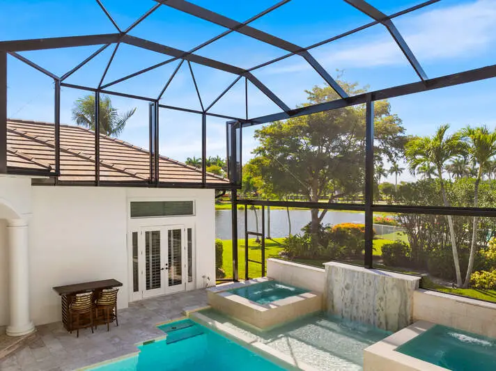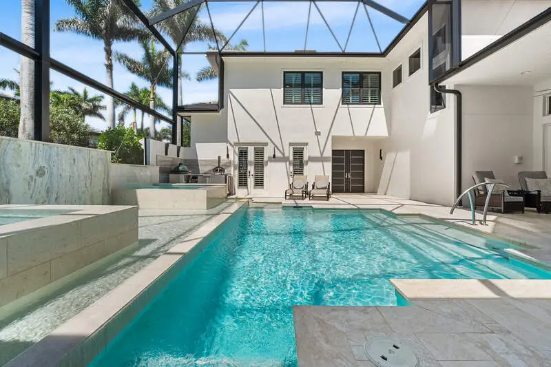 Experience elegant Florida living in this custom-built ONE-OF-A-KIND courtyard home located in the prestigious Seaside Estates within Gulf Harbour Yacht & Country Club with breathtaking lake and golf course views!This is one of the larger lots in Gulf Harbour and one of the premier lots in Seaside Estates! This 5-bedroom, 4.5-bath residence with a 3-car garage is thoughtfully designed for comfort, privacy, & entertaining. Enjoy exquisite sunset views across the lake to the 18th fairway from your generous pondside patio & also from the expansive lanai. The open-concept layout features soaring 12-foot ceilings throughout the first level, two spacious living areas, stunning Italian tile floors complemented by detailed crown molding. The kitchen opens to the main living area while offering a pass-through window to the other making it a perfect layout for entertaining! A cozy breakfast nook has views of the courtyard. The primary suite, a private retreat, offers plenty of space for a seating area, direct access to your outdoor oasis, dual walk-in closets, & an ensuite bath with a soaking tub and separate shower. A true mother-in-law (casita) suite is also located on the main level, complete with its own ensuite bath & private entrance-perfect for guests or multigenerational living. Upstairs, you'll find three additional guest bedrooms, one with an ensuite full bath, as well as a Jack & Jill bath for the other nicely sized bedrooms to share offering privacy for family or visitors. Step outside to your resort-style courtyard rebuilt in 2017 & featuring a saltwater pool,a hot tub,a refreshing 5' deep hot/cold plunge tank. The pool also includes 3 waterfalls with a stunning marble feature wall, new LED lighting and tile (2024), pool equipment (wifi controlled) & a new cage by Fabritech (2024).The limestone tile pool deck enhances the luxurious ambiance of your lanai-an entertainer's dream or the perfect place to unwind. The stainless-steel outdoor kitchen offers a sink, refrigerator, gas grill, Green Egg, and an Ooni pizza oven. Some other updates include: *New driveway *Fresh interior and exterior paint *new soffits, eavestroughs, downspouts. *Hardened stucco trim (prevents woodpecker damage)*New upstairs A/C 2024 *Main living area A/C 3 years old. *Upgraded LED pot lights throughout, casita light control system *New flex lines on sinks and toilets *New fans in casita, lanai & family room *New exterior lighting *New front entry doors *Flo by Moen shut off water system *New dishwasher and 2 wine refrigerators *One of the finest features this home is offering is NATURAL GAS will be available soon. Seller has already paid to have access to the gas line once installed! This UNIQUE home offers the perfect blend of sophistication, comfort, and breathtaking views, all in one of Southwest Florida's most sought-after gated communities. A Golf Membership is available for a separate purchase, as is a 50' boat slip in Gulf Harbour Marina. Seller's flood insurance is transferrable!