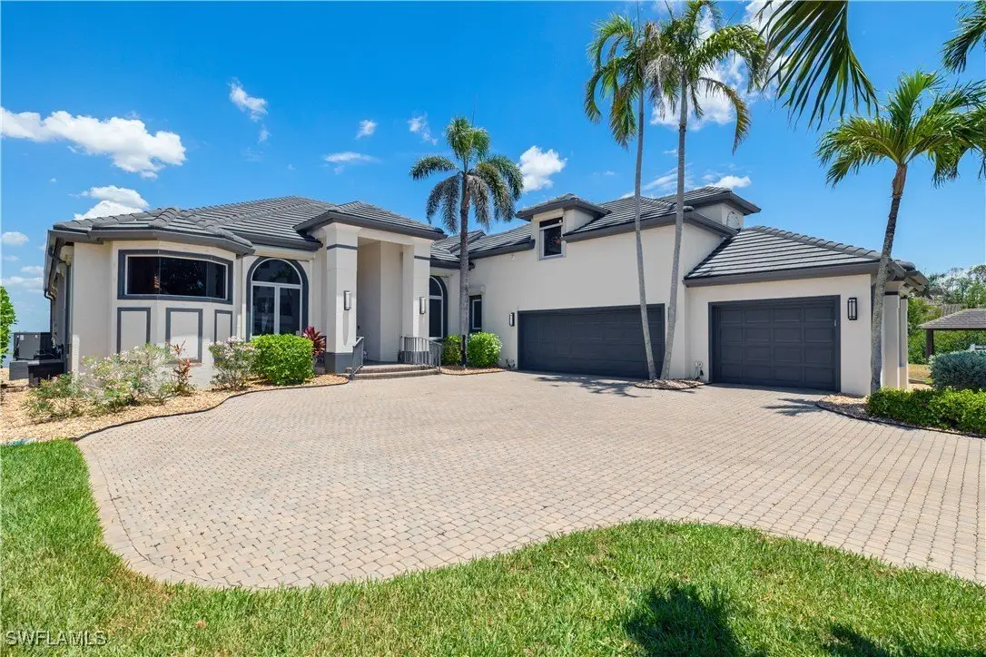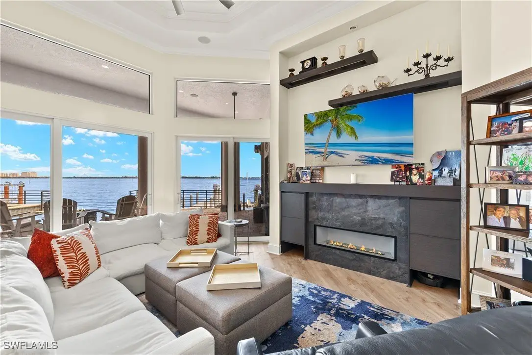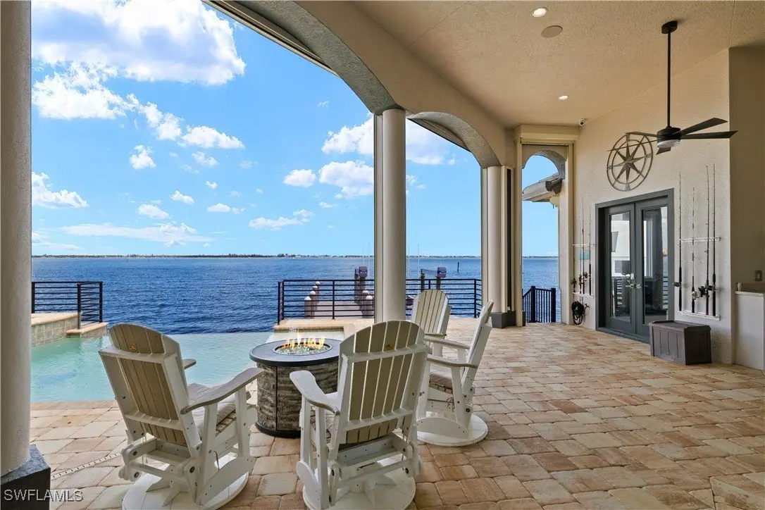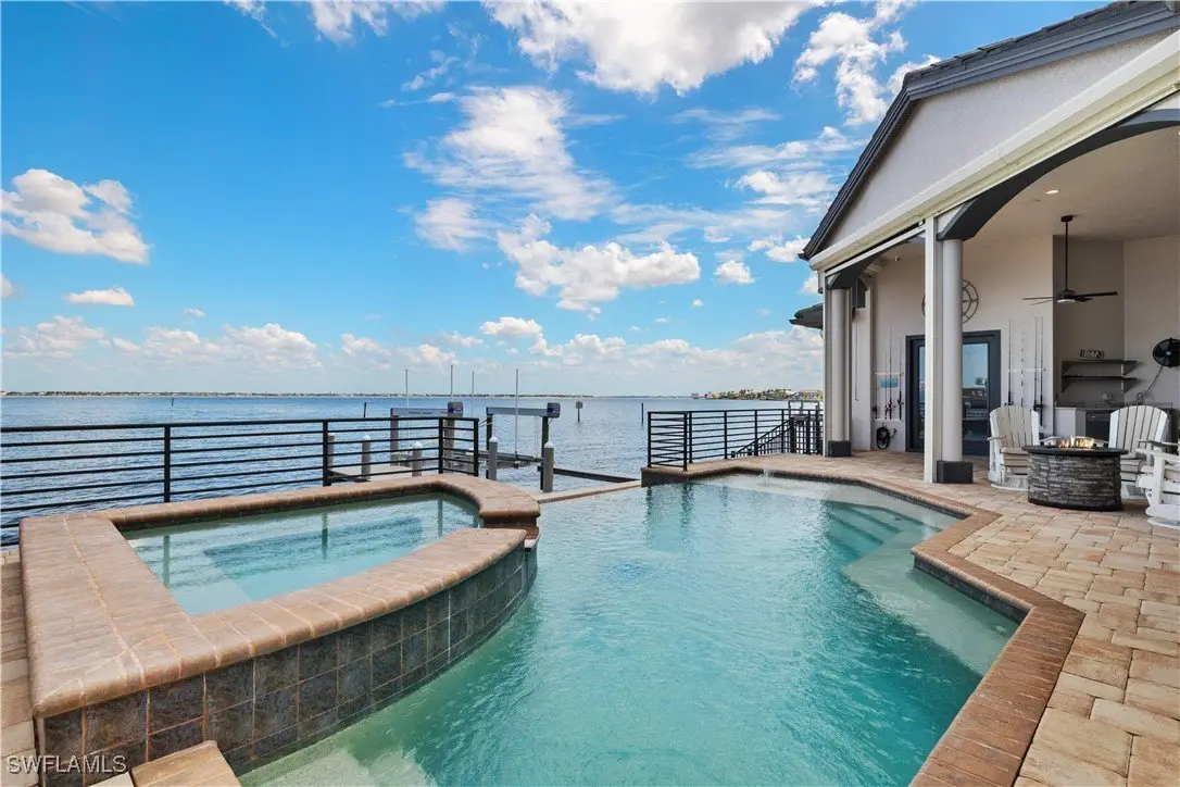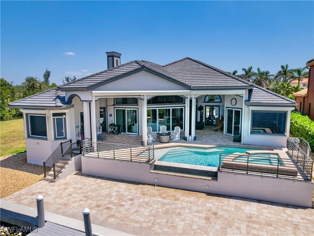 Luxurious Waterfront Living in the Prestigious Gated Community of Catalpa Cove. This beautifully updated estate offers over 3,500 square feet of refined living space with 4 bedrooms, 4.5 bathrooms, plus a private 1 bedroom, 1 bathroom guest suite with a partial kitchen-perfect for visitors, or a secluded workspace. From the moment you step through the front door, the home welcomes you with soaring ceilings, Great natural light, and stunning river views that stretch across the formal living and dining areas. The gourmet kitchen is both spacious and functional, featuring extensive counter space and an open layout that flows seamlessly into the family room-ideal for entertaining or everyday living. The VIP suite is thoughtfully positioned for privacy and showcases expansive water views, a spa-inspired bath, and generous closet space. Each additional bedroom includes its own ensuite bathroom, creating a private and comfortable space for family and guests alike. Outdoors, the home truly shines. An oversized paver lanai frames a saltwater infinity-edge pool and spa, offering a peaceful escape surrounded by breathtaking waterfront scenery. The attached guest suite, located just off the lanai, can also serve as a convenient pool bath. Boaters will love the private dock outfitted with a 16,000 lb. lift, power, and water connections, alongside a raised seawall and approximately 80 feet of direct river frontage. Recent updates add to the home's value and peace of mind: a 2022 roof, 2-zone HVAC with dehumidifier and UV purification (2021), Storm Smart Kevlar storm screens, new exterior and interior paint, upgraded irrigation running on a private well, and a dual propane tank setup with generator-ready electrical panel. Best of all, this home remained high and dry-no water intrusion in either the main residence or garage during any storms. Located just minutes from fine dining, marinas, and the white-sand beaches of Sanibel and Captiva, this is a rare opportunity to own a truly turn-key waterfront residence in one of Southwest Florida's most sought-after communities.