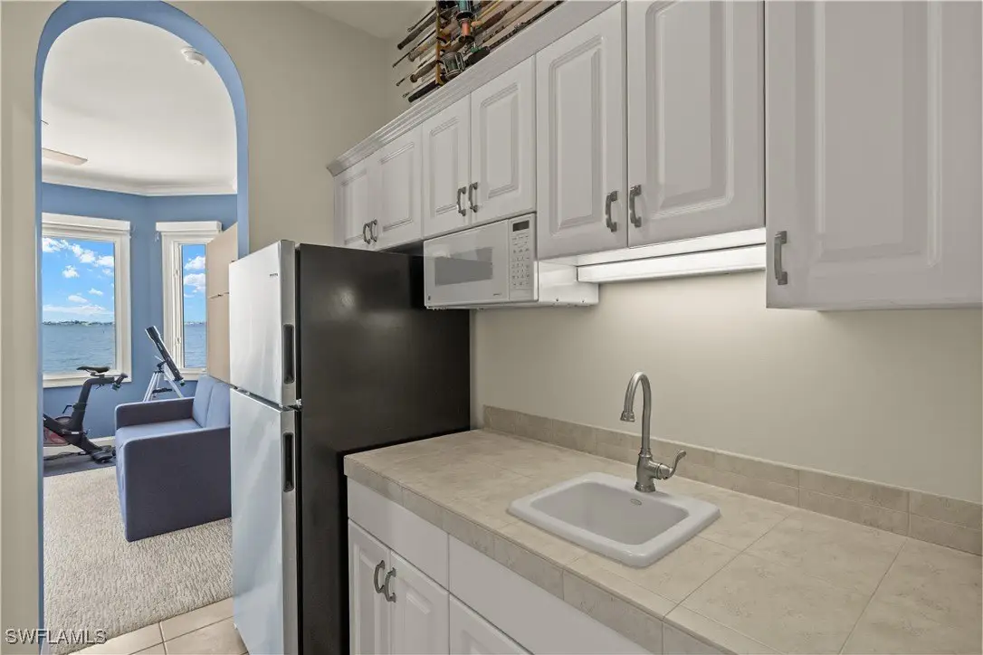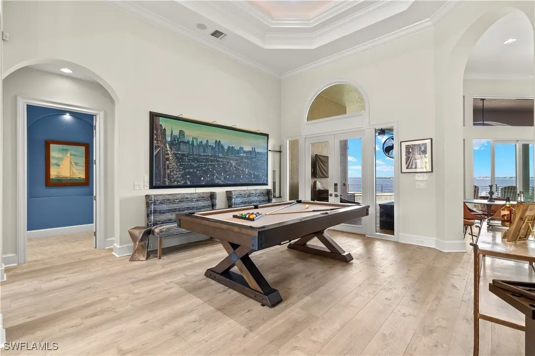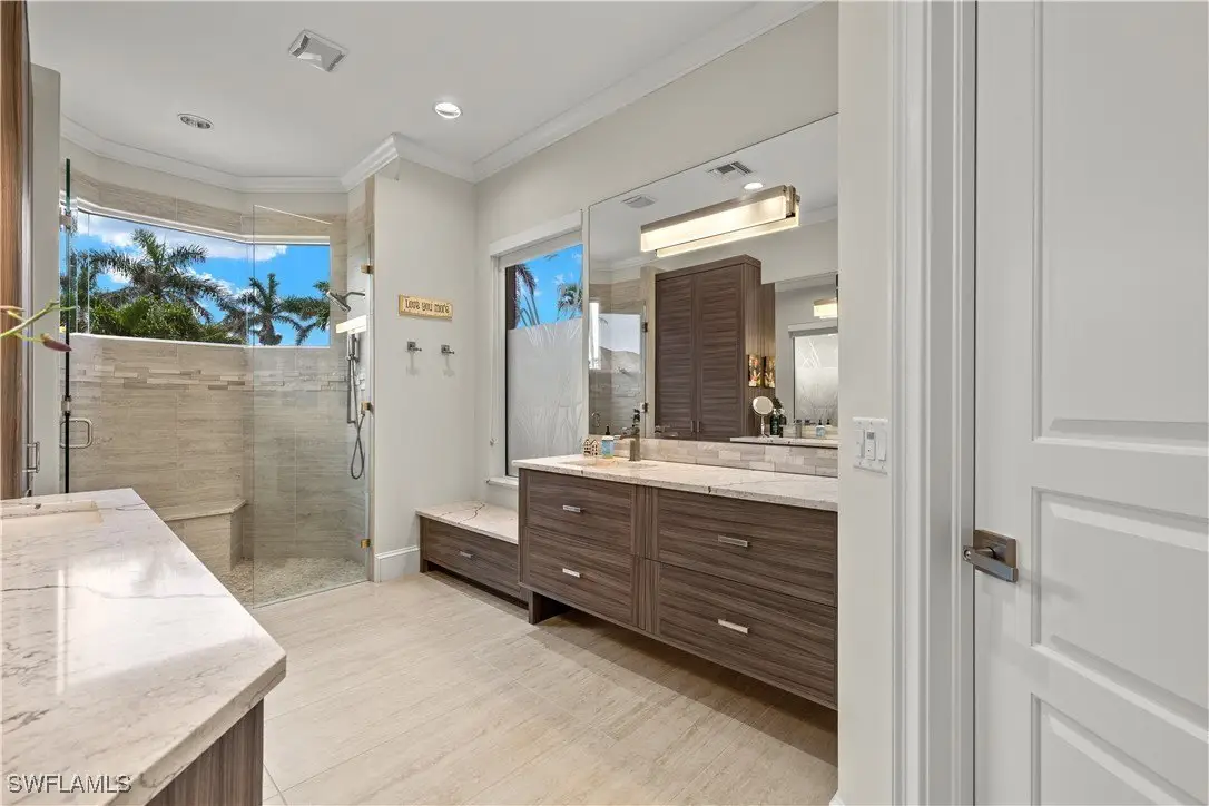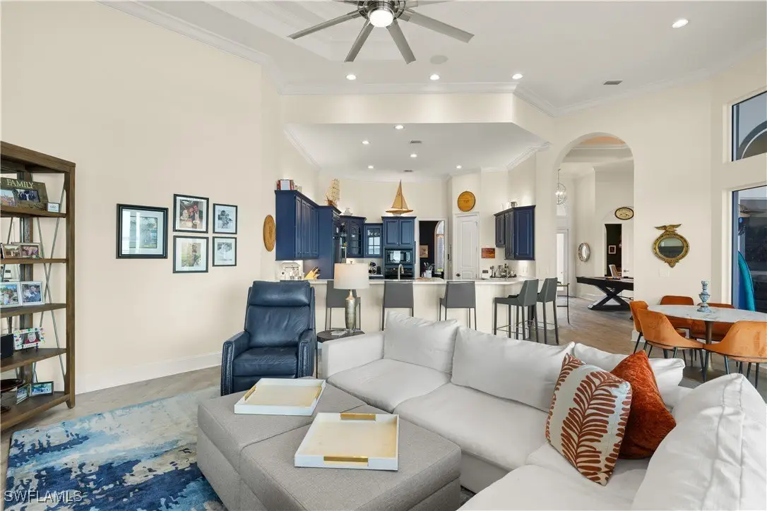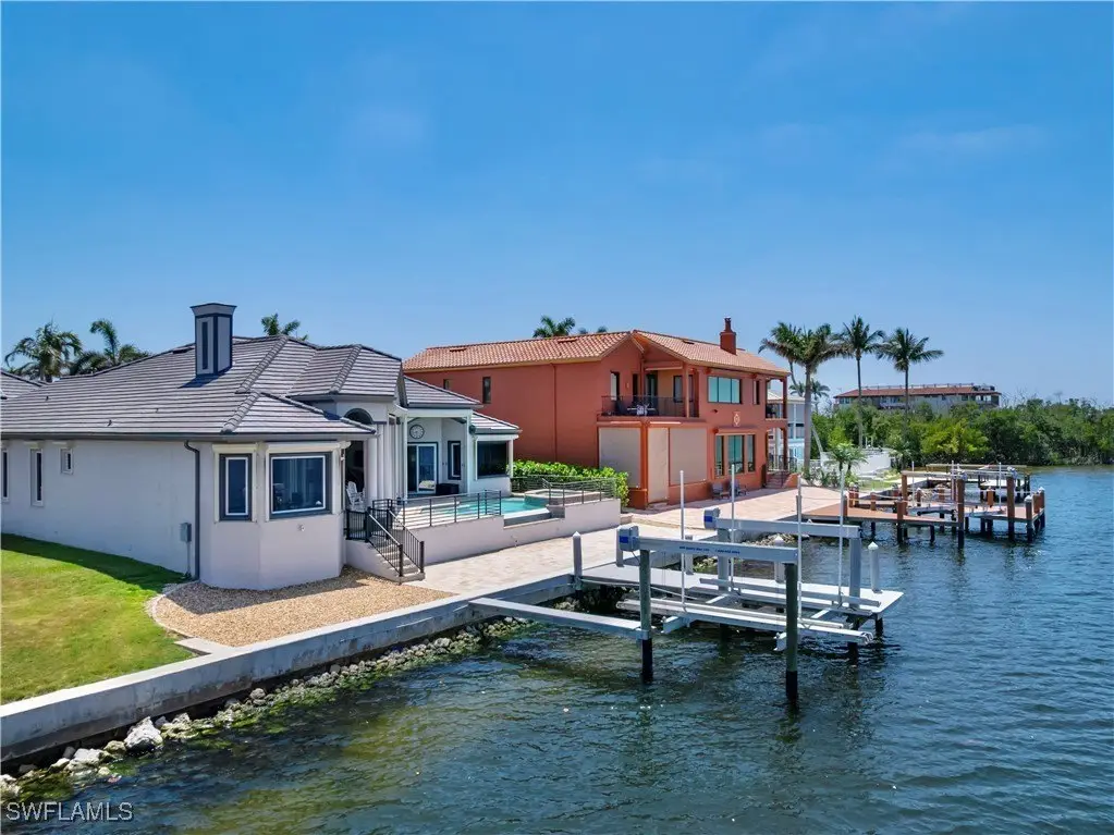 Luxurious Waterfront Living in the Prestigious Gated Community of Catalpa Cove. This beautifully updated estate offers over 3,500 square feet of refined living space with 4 bedrooms, 4.5 bathrooms, plus a private 1 bedroom, 1 bathroom guest suite with a partial kitchen-perfect for visitors, or a secluded workspace. From the moment you step through the front door, the home welcomes you with soaring ceilings, Great natural light, and stunning river views that stretch across the formal living and dining areas. The gourmet kitchen is both spacious and functional, featuring extensive counter space and an open layout that flows seamlessly into the family room-ideal for entertaining or everyday living. The VIP suite is thoughtfully positioned for privacy and showcases expansive water views, a spa-inspired bath, and generous closet space. Each additional bedroom includes its own ensuite bathroom, creating a private and comfortable space for family and guests alike. Outdoors, the home truly shines. An oversized paver lanai frames a saltwater infinity-edge pool and spa, offering a peaceful escape surrounded by breathtaking waterfront scenery. The attached guest suite, located just off the lanai, can also serve as a convenient pool bath. Boaters will love the private dock outfitted with a 16,000 lb. lift, power, and water connections, alongside a raised seawall and approximately 80 feet of direct river frontage. Recent updates add to the home's value and peace of mind: a 2022 roof, 2-zone HVAC with dehumidifier and UV purification (2021), Storm Smart Kevlar storm screens, new exterior and interior paint, upgraded irrigation running on a private well, and a dual propane tank setup with generator-ready electrical panel. Best of all, this home remained high and dry-no water intrusion in either the main residence or garage during any storms. Located just minutes from fine dining, marinas, and the white-sand beaches of Sanibel and Captiva, this is a rare opportunity to own a truly turn-key waterfront residence in one of Southwest Florida's most sought-after communities.