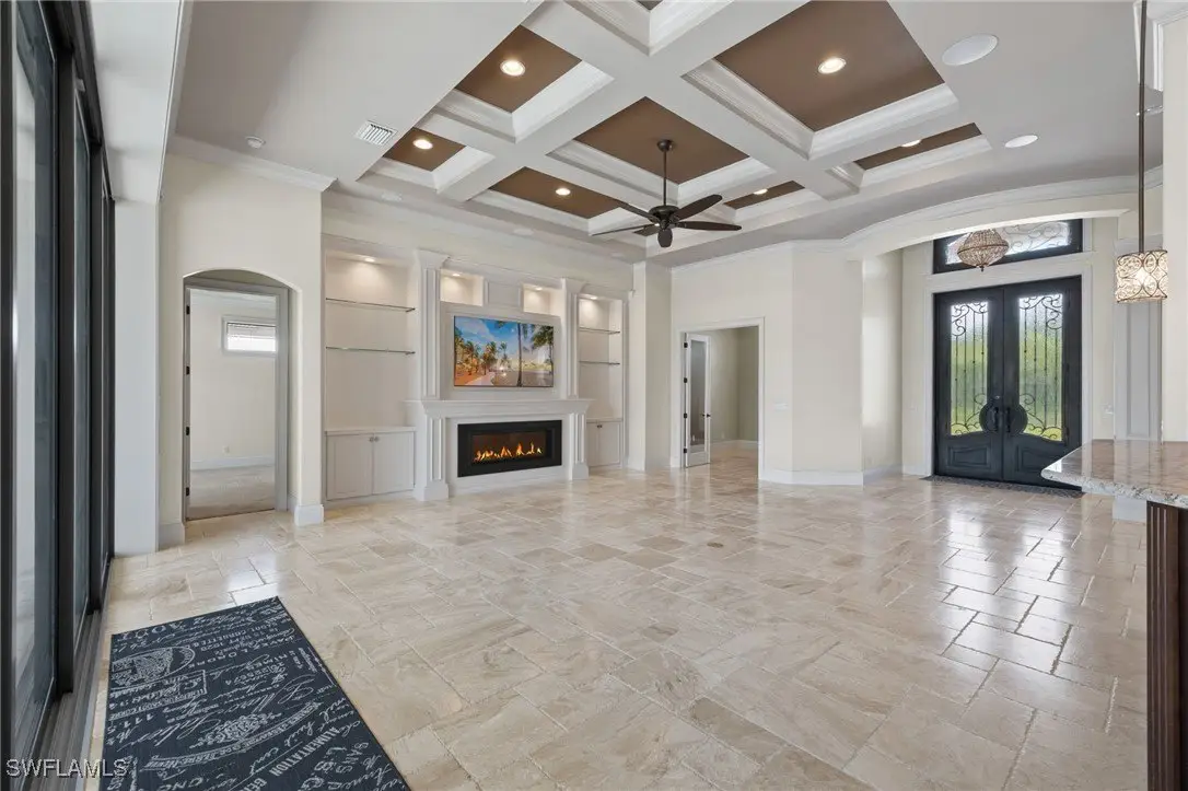 Located in the premier deep-water boating community of Southwest Florida, this luxurious 4-bedroom home boasts a great room floor plan complete with a fireplace, custom built-ins, and top-quality finishes throughout. The home exudes spaciousness, featuring a beautiful kitchen with high-end stainless steel appliances and a well-appointed butler's pantry with an extra refrigerator and wine cooler. The master bedroom is expansive, offering a gorgeous, spacious bath and two walk-in closets. Guest bedrooms are also roomy and private. A private study is conveniently located off the great room, along with a formal dining or additional sitting area. Zero pocket sliders open from the great room to a generous pool entertainment area, which includes fire bowls, an impressive spa, and a large outdoor kitchen area with a fireplace. The dock area is superb, with ample deck space and a boat lift. Palmetto Point provides quick access to the intercoastal, bay, and gulf waters, where you can enjoy waterfront dining, incredible beaches, world-class fishing, and more. The location of Palmetto Point is ideal, being close to Sanibel and Captiva Islands, Fort Myers Beach, nearby HealthPark, shopping, and excellent restaurants. This is a remarkable offering.