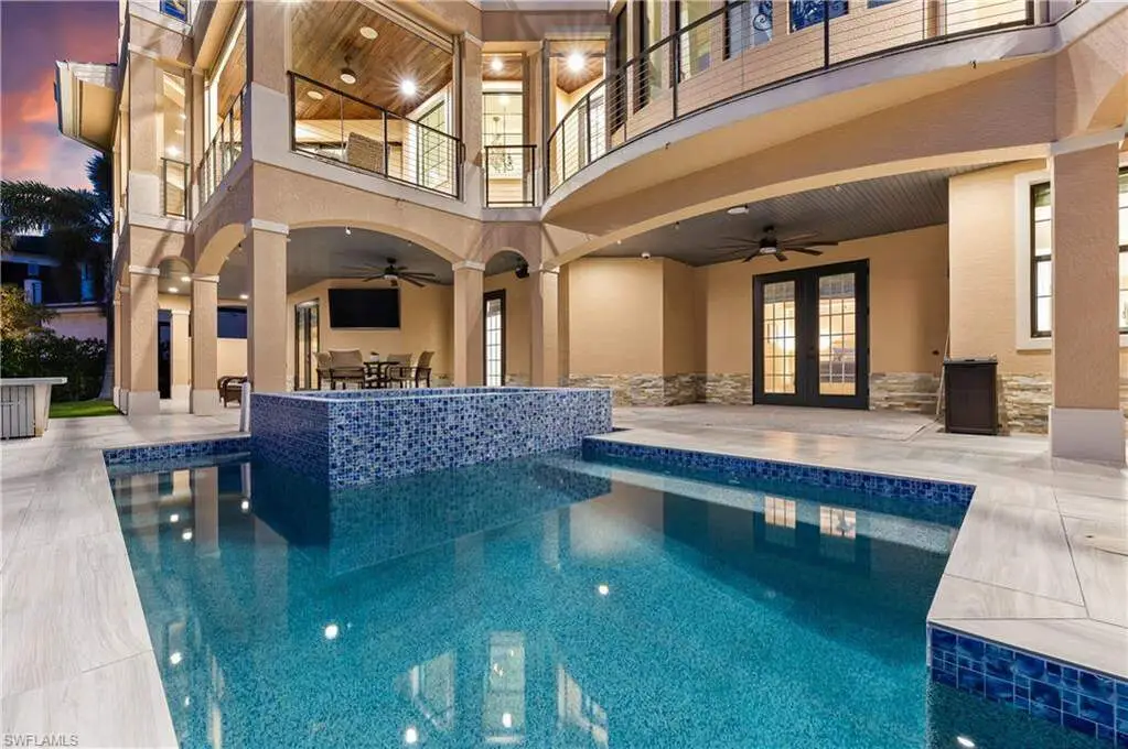 WATERFRONT LIVING AT ITS FINEST W/ OWNER FINANCING OPTION AVAILABLE.. Masterful design & coastal contemporary are uniquely embodied in this luxurious estate on a private island in Jonathan Harbour. Spanning over 13,000 SF, this magnificent waterfront residence is a haven for gazing at bay front views from multiple vantage points. Whether its the gourmet kitchen featuring premium custom cabinetry, quartz counters, large peninsula island breakfast bar, walk-in hidden pantry and stainless appliances; or the two-story sophisticated dining room with volume ceilings and windows; or the cozy great room allowing you to entertain in style while guests spill out to the outdoor living area with built-in BBQ grill + gas fireplace; this 5B/6.5BA home defines true modern day elegance. The fully furnished, multi-level home includes an elevator; exercise room; den; home office; extra large laundry/utility room; pool; spa; gas fire pit; oversized 5-car garage and a non-conforming lower level with 2 bedrooms, full bath, full size kitchen, great room and an impressive full size bar -- allowing space and privacy for the long-term out of town guests. The primary suite features breathtaking sunrise views on its large private balcony, opulent his/her en-suites and dual custom closets. Additional private guest suites - all include en-suite baths, generous closets and bay views as well. Nestled along the serene shores of Connie Mack Island, this stunning coastal retreat comes with two large boat slips w/ lifts (27k lb + 10k lb) with direct access to the Bay and Gulf in minutes. Truly a boater's paradise perfectly situated near Sanibel and Captiva Island. If you are pursuing the ultimate Southwest Florida Coastal Lifestyle....we invite you to view this exclusive waterfront property.