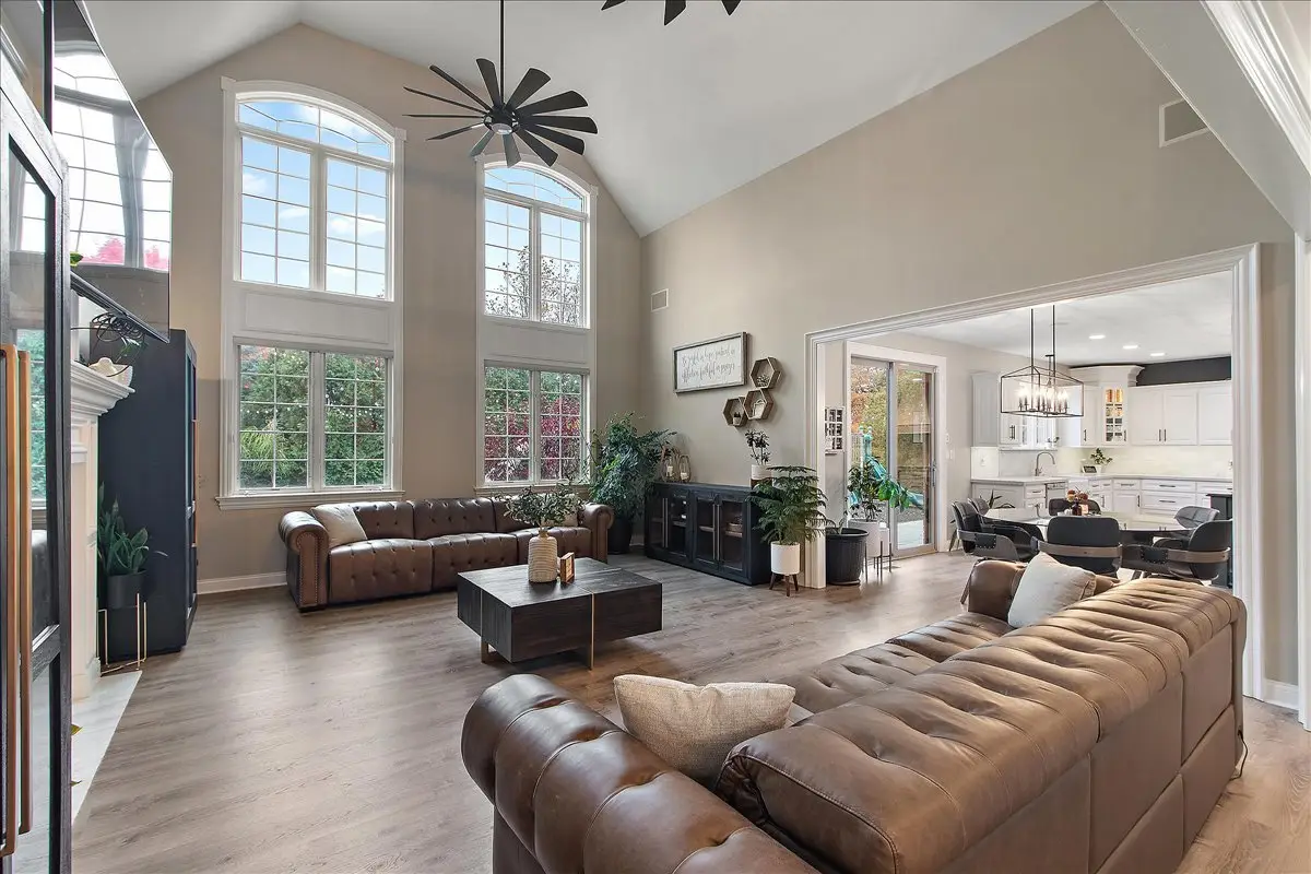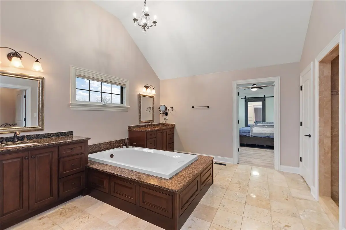 This impressive brick home blends luxury, comfort, and thoughtful design. The grand entry welcomes you with an elegant chandelier and dual staircase leading to the open-concept main level. The two-story living room features soaring windows and a gas fireplace, adjacent to a gourmet kitchen updated in 2022 with custom cabinetry, an oversized island and walk-in and butler's pantries. The main level also offers a formal dining room, a sitting room, a full bath, a mud room and a versatile bedroom with backyard access. Upstairs, the primary suite showcases vaulted ceilings, two walk-in closets, and a spa-like ensuite with dual sinks, soaking tub, and large shower. A bonus room extends from the suite, ideal for an office, playroom, or fitness space. Three additional bedrooms, two additional full bathrooms and a large laundry room complete the upper level. The finished basement includes a recreation area, salon, bedroom, full bath, and plenty of storage. Outside, relax in your private fenced backyard featuring a heated in-ground saltwater pool, gazebo with gas fire-pit, built-in grill area, in-ground trampoline, and a park-like playground. The heated 3-car garage offers direct basement access as well as access to the mud room. This move-in ready Dream Home is ready for it's next owner! Schedule your private showing today!